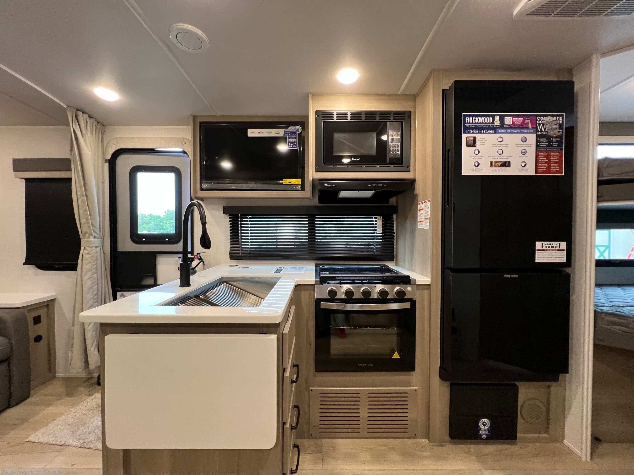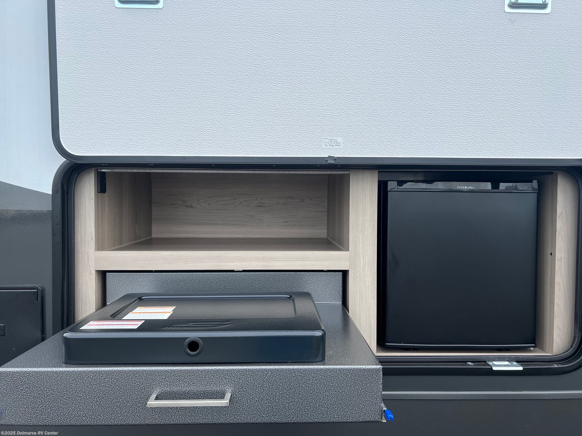 Your camping memories will be unforgettable in this 2026 Forest River Rockwood Mini Lite 2509S. Ready to be a proud Forest River owner? This 2026 Forest River Rockwood Mini Lite 2509S is the perfect fit. The sleep capacity allows you to bring up to 8 along on your travels in this rig. Setup is a breeze thanks to one roomy slide. Cook up the best camping meals with appliances like the fridge, oven, stove. Even more RV memories will be made as you spend quality time watching a movie on the TV.. Memories are made around the dinner table, and this u-shaped dinette is where you’ll make them. You’ll wake up feeling well-rested for your adventures in your queen bed. If you like your rig cool in the summer and warm in winter, this A/C option can do the trick. The 54 gallon fresh water tank is just right for easy RV traveling. The exterior features make camping a breeze, such as awning, exterior grill, exterior speakers, external shower, hitch, ladder, leveling jacks, outside kitchen, skylight, slideout and spare tire kit. An outside shower makes it easier to keep your adventure rig clean. The outside kitchen keeps your rig from overheating at meal time.