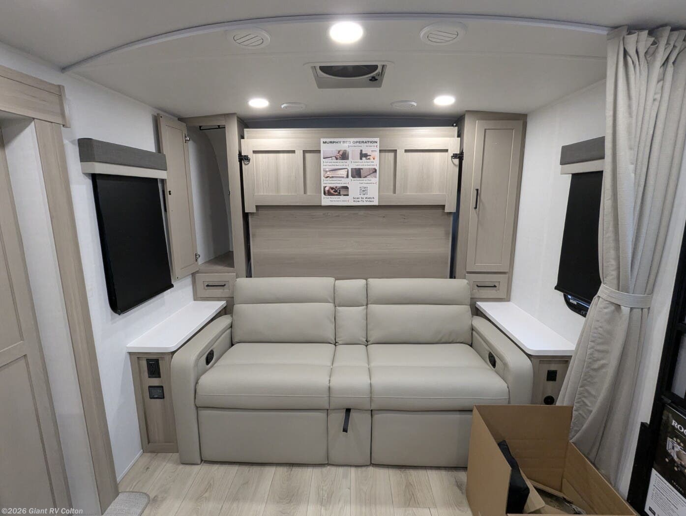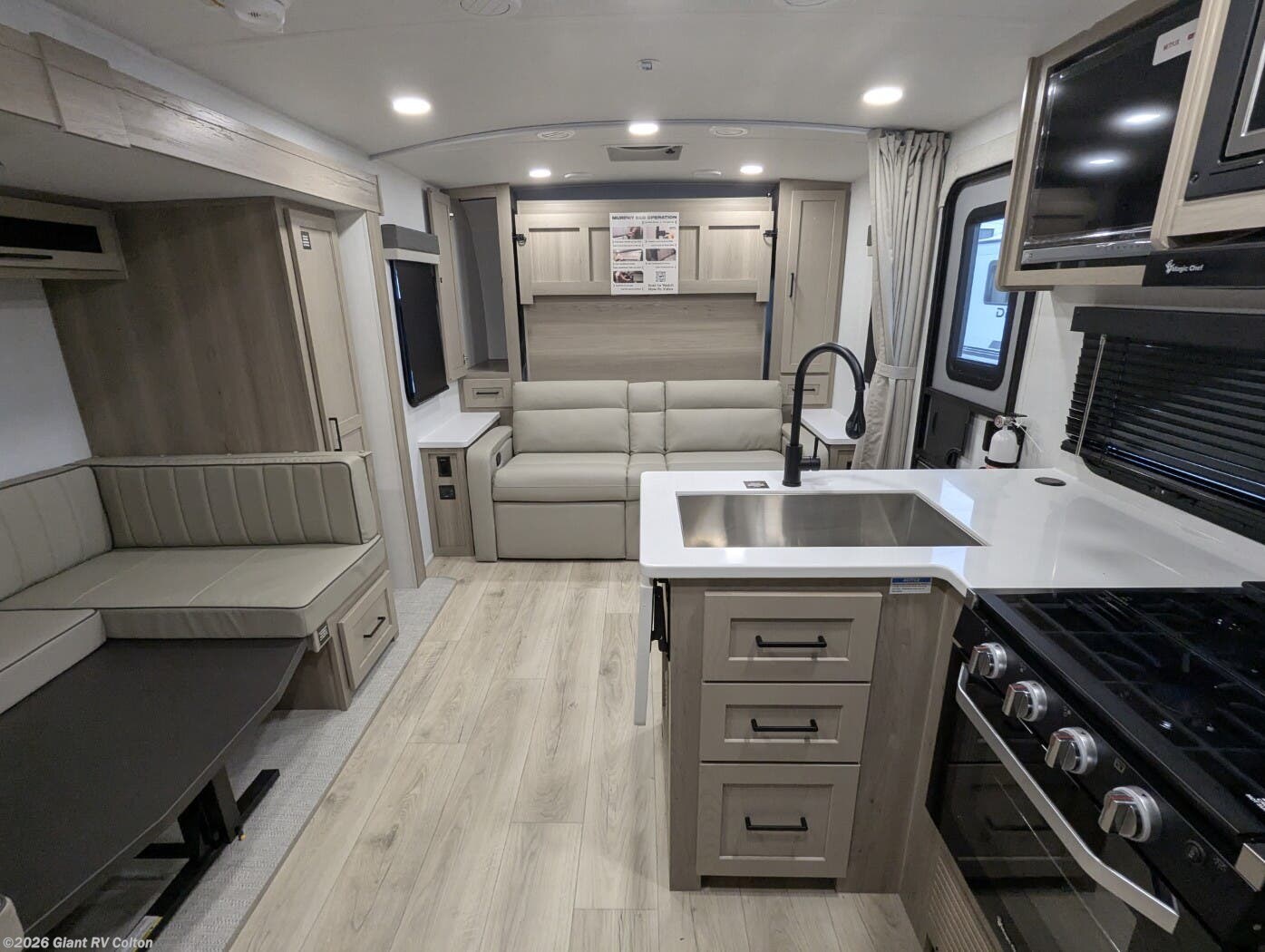- Front Murphy Bed / Lounge Area that transforms from daytime seating to restful sleep.