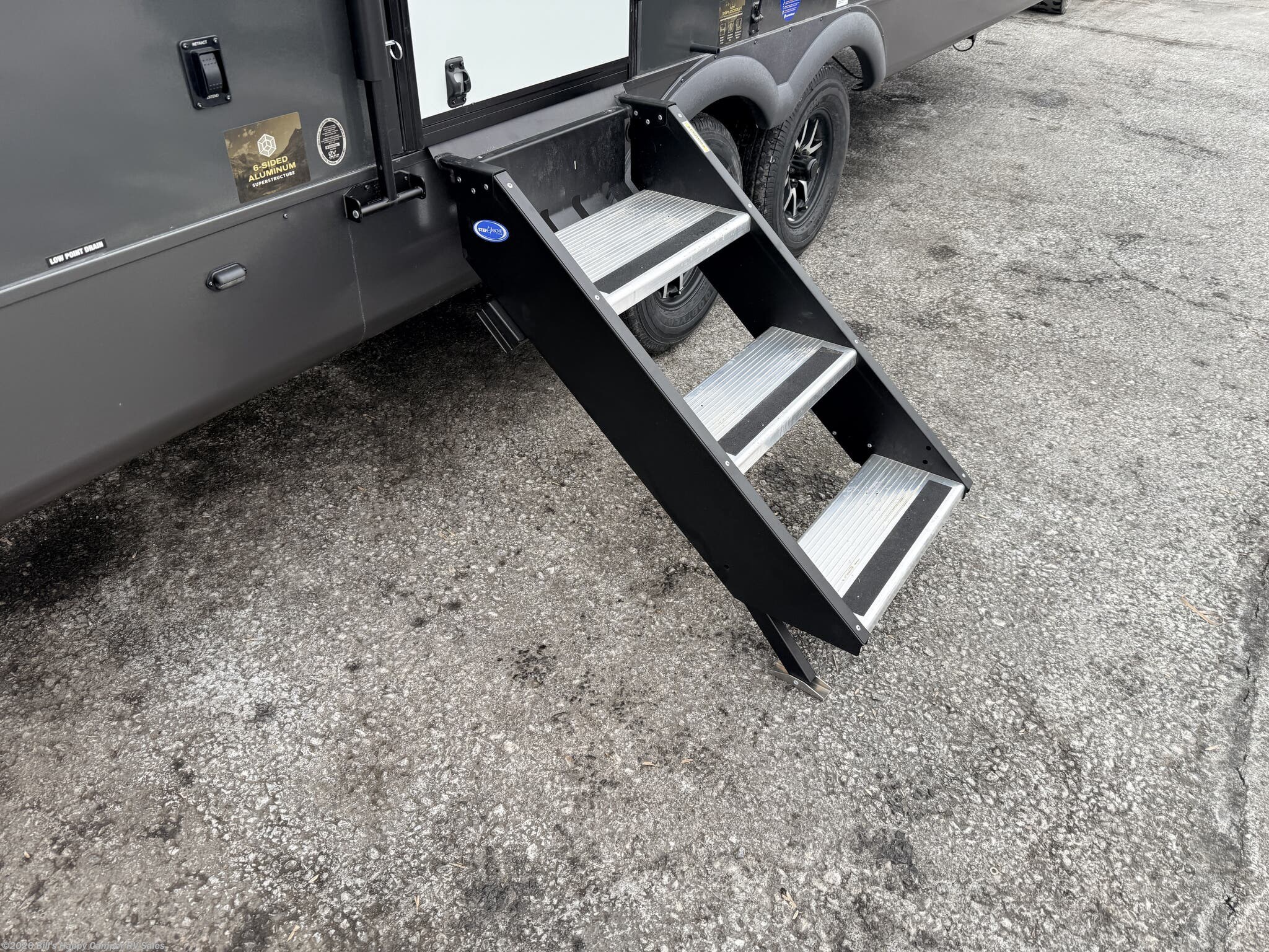 Black Tank Flush, Enclosed Underbelly, Exterior Speakers, Fiberglass Sidewalls, Heated Underbelly, Hitch, Ladder, Pass Thru Storage, Power Awning, Power Hitch Jack, Power Stabilizer Jacks, Roof Vent, Screen Door, Skylight, Slam Latch Baggage Doors, Slideout, Stabilizer Jacks, Tinted Windows -