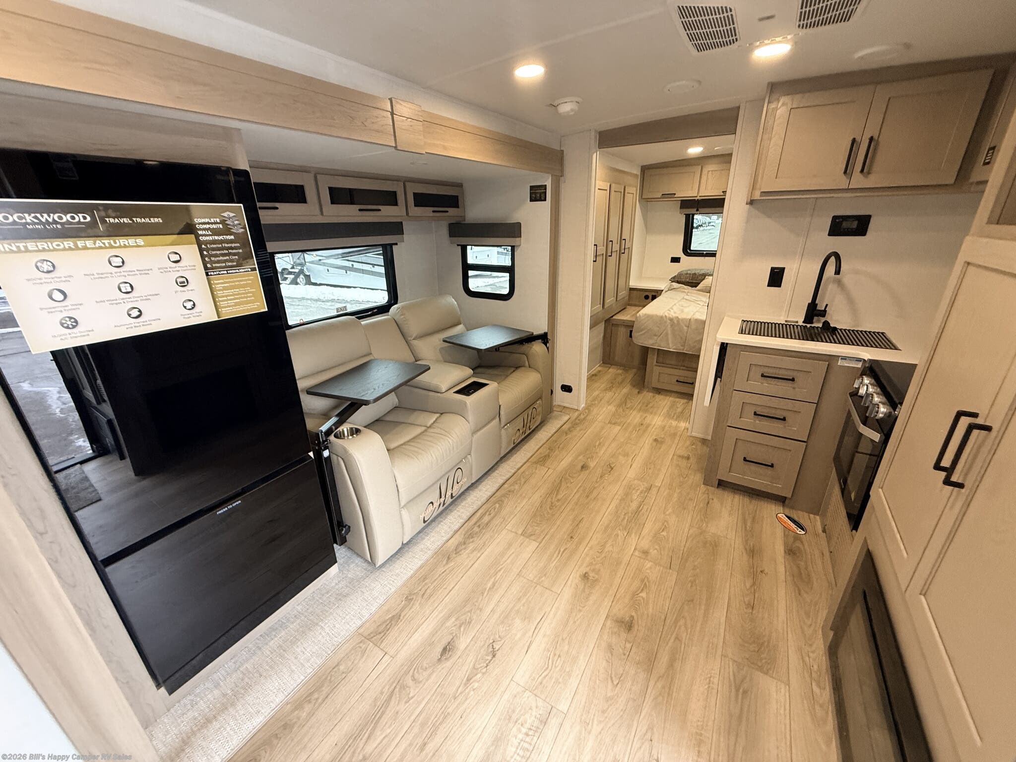 This 2026 Forest River Rockwood Mini Lite 2511S is an RV everyone will love. Ready to be a proud Forest River owner? This 2026 Forest River Rockwood Mini Lite 2511S is the perfect fit. This rig sleeps 2, so it makes the perfect couples RV. With two slides, you’ll have the perfect amount of room to make this rig feel like home. Cook up the best camping meals with appliances like the fridge, oven, stove. Spend time together in the living area with the theater seating and , or TV. Sweet dreams are made of the queen bed in this RV bedroom. You’ll never get too hot or too cold inside your rig thanks to the heating option. Go longer without filling up thanks to the 54 gallon fresh water tanks. Outside, you’ll find black tank flush, enclosed underbelly, exterior speakers, fiberglass sidewalls, heated underbelly, hitch, ladder, pass thru storage, power awning, power hitch jack, power stabilizer jacks, roof vent, screen door, skylight, slam latch baggage doors, slideout, stabilizer jacks and tinted windows. Pass-through storage allows for easy access to all your gear.