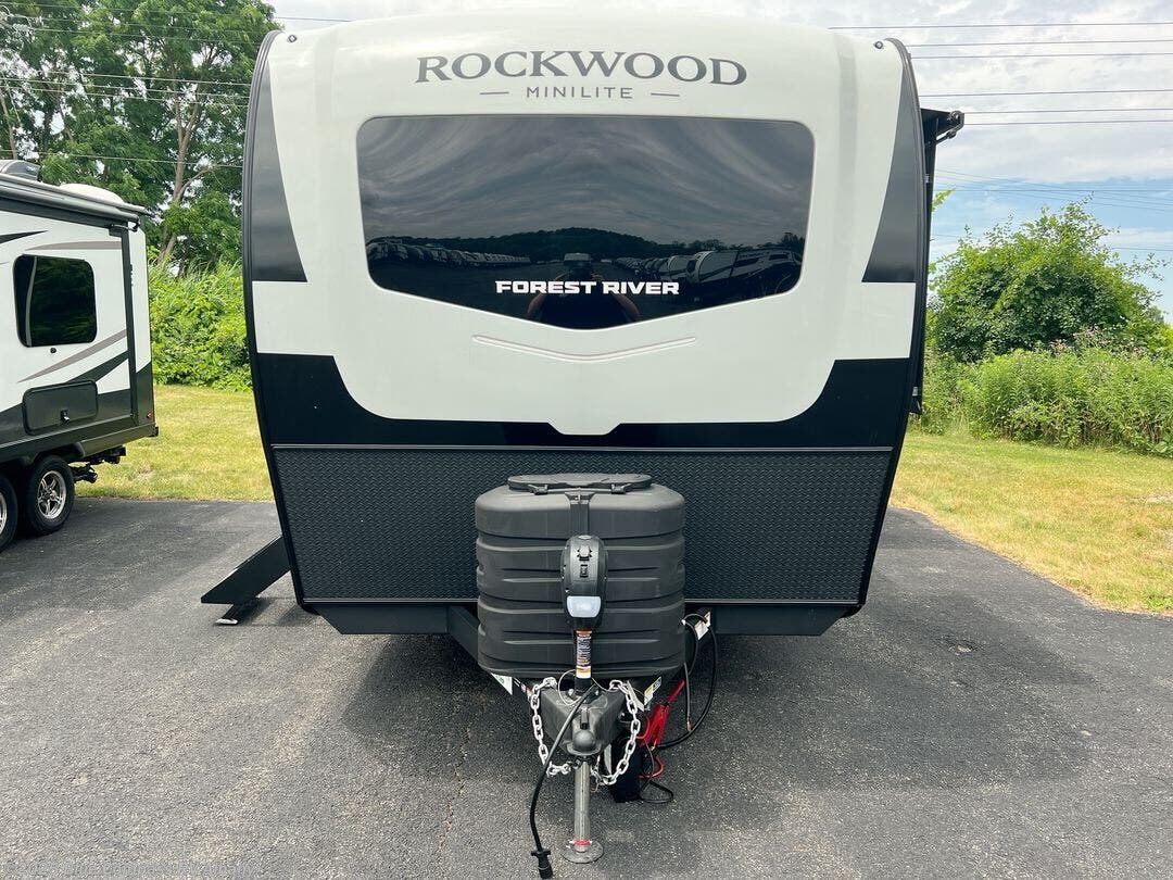 Each Rockwood Mini Lite travel trailer by Forest River is constructed with a fully laminated one-piece walkable roof, sleek frameless windows, and a six-sided full aluminum frame for strength and durability. The 12V thermostatically controlled heated tanks, plus radiant foil in the underbelly and slide out floors will allow you to camp well into the colder months, and the 200W roof solar panel will be perfect for a little off-gridding. Each model includes solid surface kitchen countertops, solid wood cabinet doors, night roller shades, plus many more interior features. Having an AIR 360+ omnidirectional antenna with WiFi prep on board gives you the option to get some work done if it's needed, and the power tongue jack provides hassle-free set up, so you can enjoy more time relaxing!