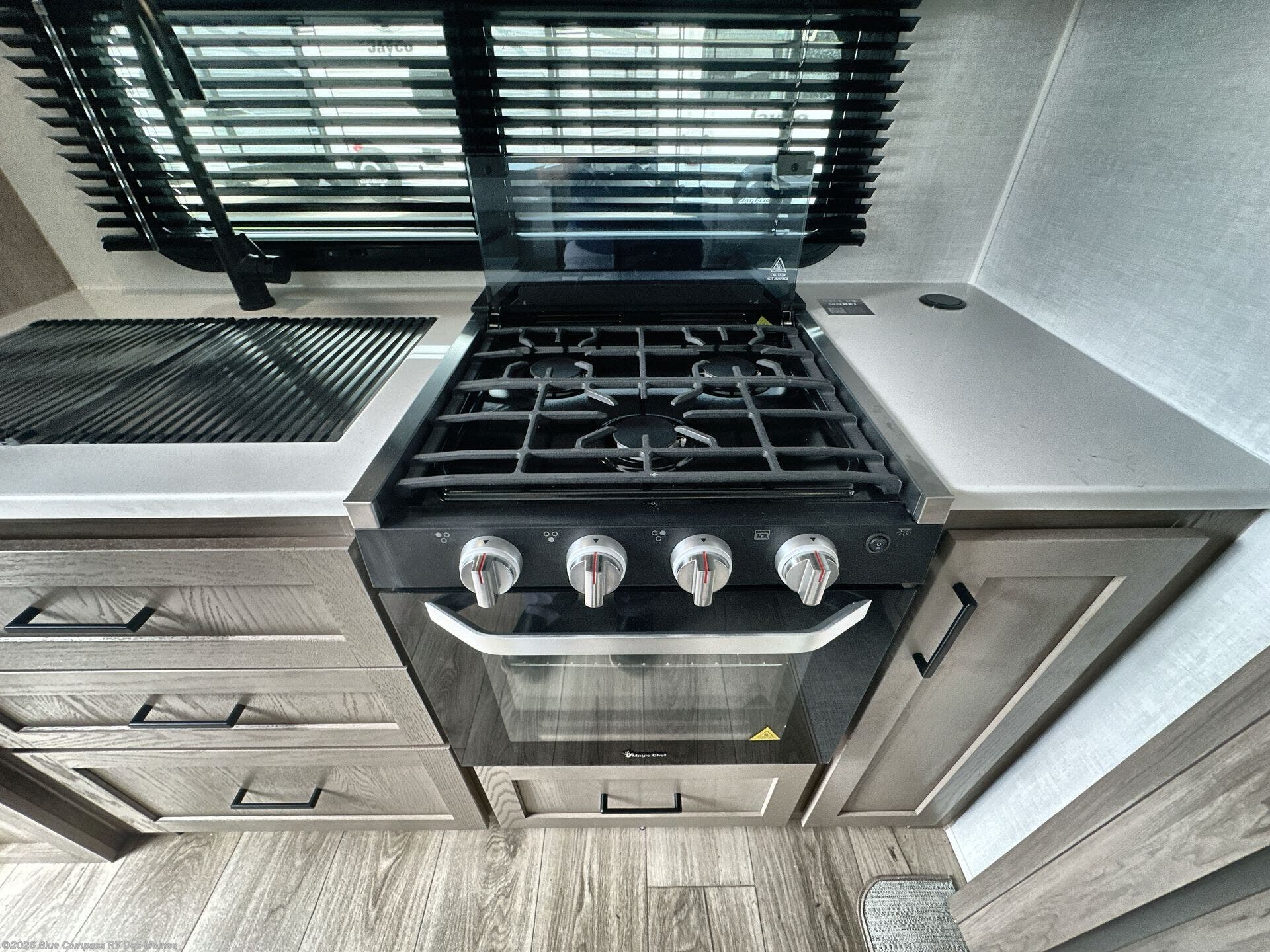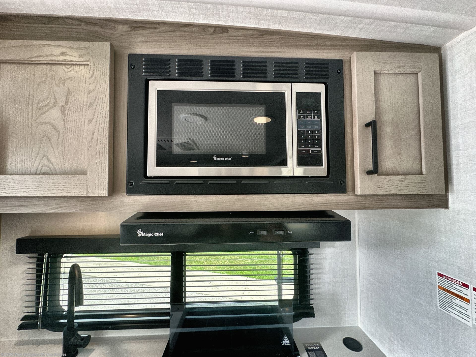 You and your spouse will have a great time camping in this travel trailer! You will have your own RV queen bed to sleep on in the front private bedroom, and an optional TV can be added if you enjoy the morning news in bed. Breakfast can be made on the three burner cooktop in the rear kitchen, or head outdoors to cook on the outside griddle. The 67" theater seating with cupholders will provide a place to relax and dine together, and the spacious walk-through bath will allow you to clean up before you head out for the day. This model includes plenty of storage space, including a pantry for your snacks, a wardrobe slide out in the bedroom, plus a drop-frame pass-through storage for larger camp gear!