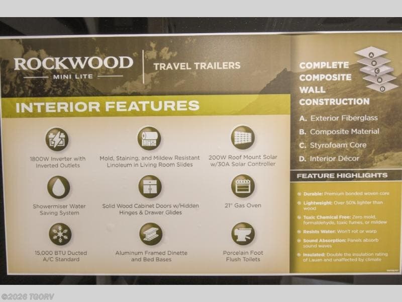 Rockwood Mini Lite travel trailers are built with quality construction and premium features, including:
