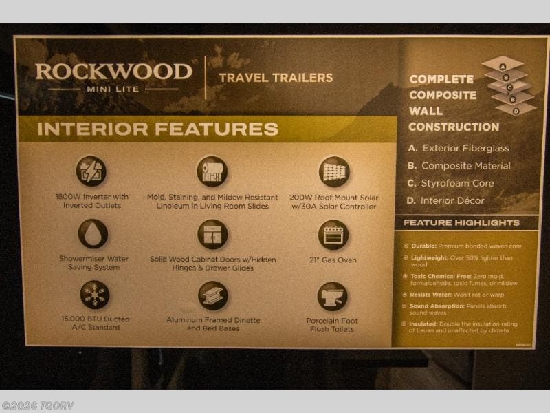 Rockwood Mini Lite travel trailers are built with quality construction and premium features, including: