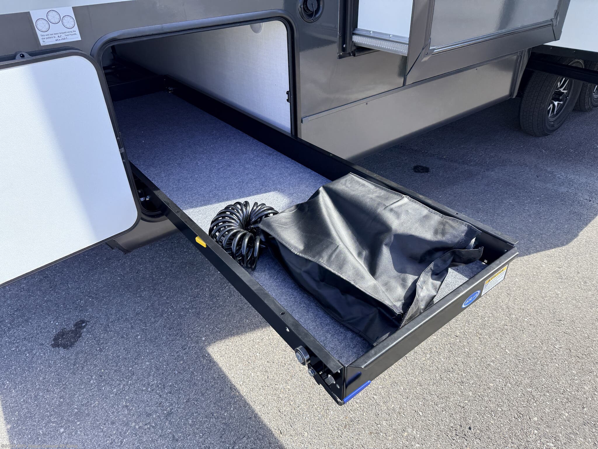 Awning, Black Tank Flush, Enclosed Underbelly, Exterior Speakers, External Shower, Fiberglass Sidewalls, Front Fiberglass Cap w/Window, Front Overhead Storage, Heated Underbelly, Hitch, Ladder, Pass Thru Storage, Power Awning, Power Hitch Jack, Power Stabilizer Jacks, Roof Vent, Screen Door, Skylight, Slam Latch Baggage Doors, Slideout, Spare Tire Kit, Stabilizer Jacks, Tinted Windows -