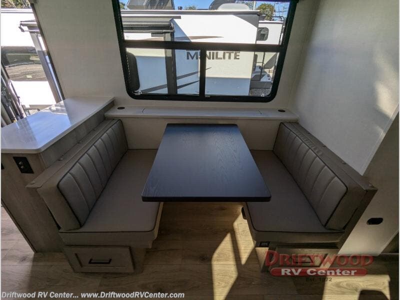 Each Rockwood Mini Lite travel trailer by Forest River is constructed with a fully laminated one-piece walkable roof, sleek frameless windows, and a six-sided full aluminum frame for strength and durability. The 12V thermostatically controlled heated tanks, plus radiant foil in the underbelly will allow you to camp well into the colder months, and the 200W roof solar panel will be perfect for a little off-gridding. Each model includes solid surface kitchen countertops, hidden hinge cabinet doors, roller shades, plus many more interior features. Having an AIR 360+ omnidirectional antenna with WiFi prep on board gives you the option to get some work done if it's needed, and the power tongue jack provides hassle-free set up, so you can enjoy more time relaxing!