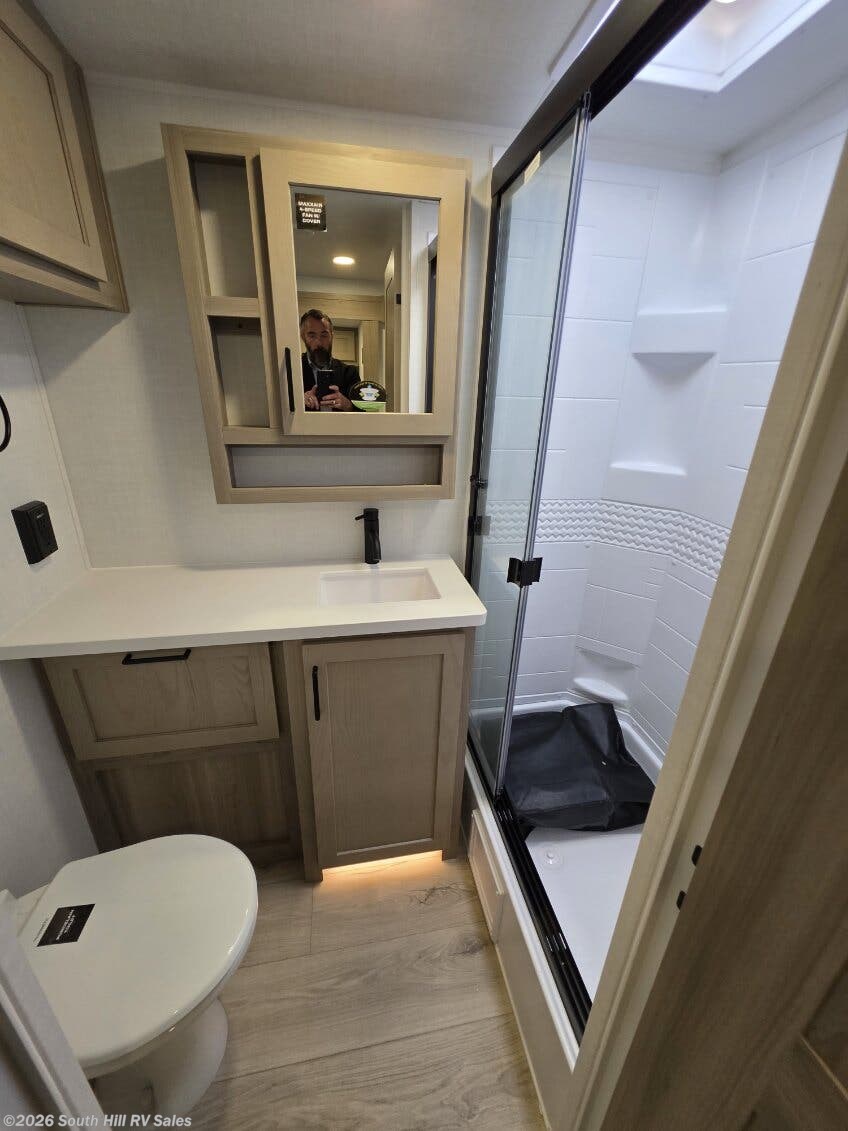 Fireplace, Kitchen Sink, Medicine Cabinet, Roof Vents, Self Contained, Shower, Theater Seating, Toilet
