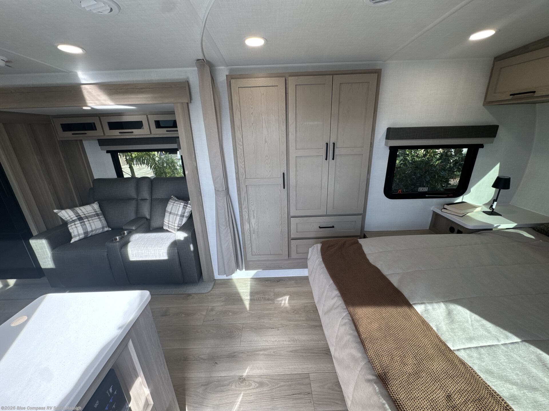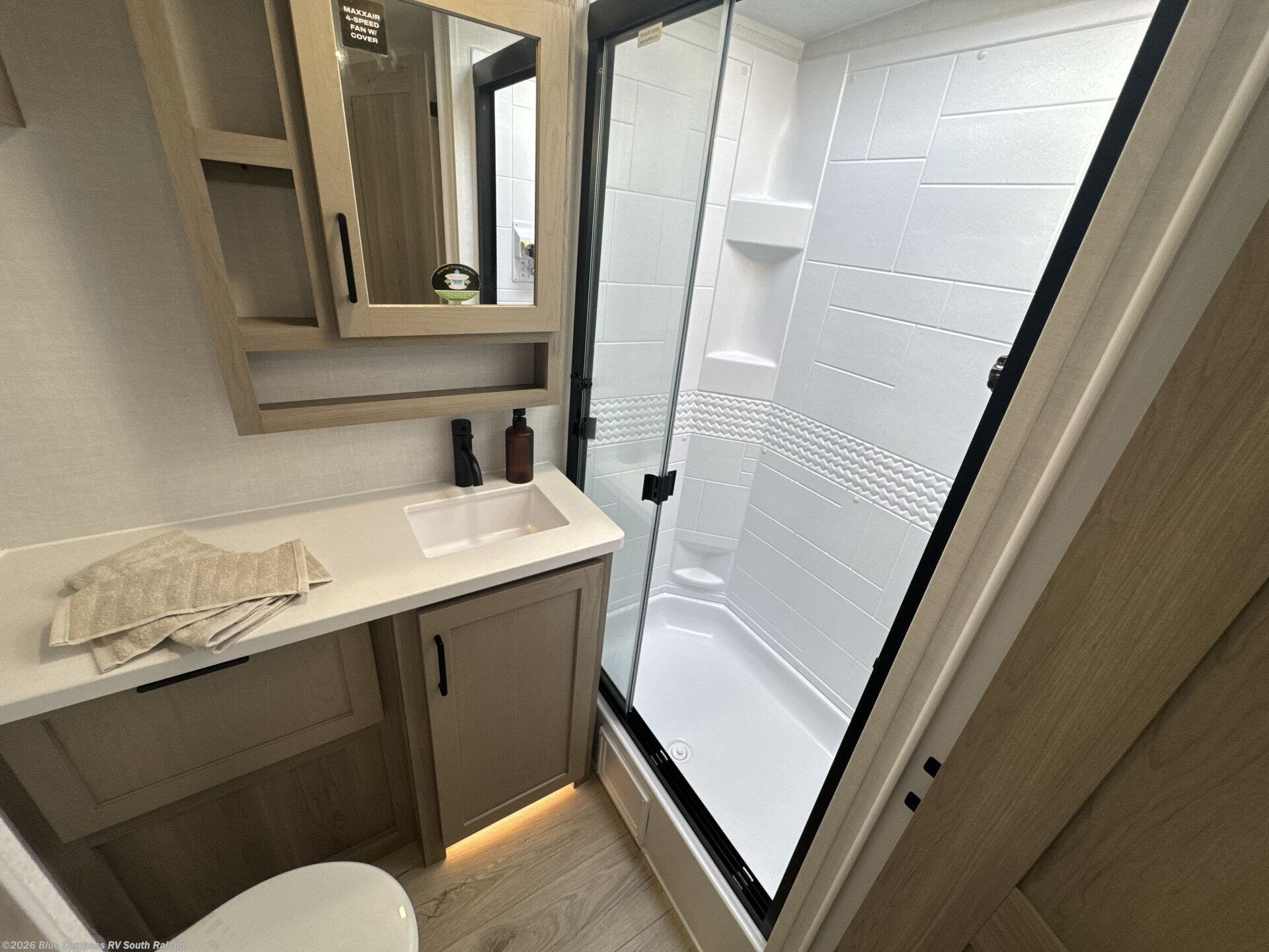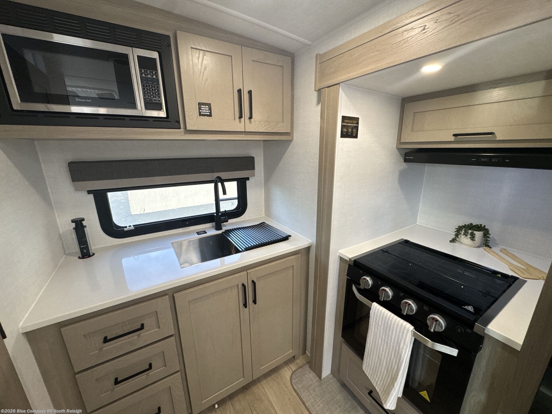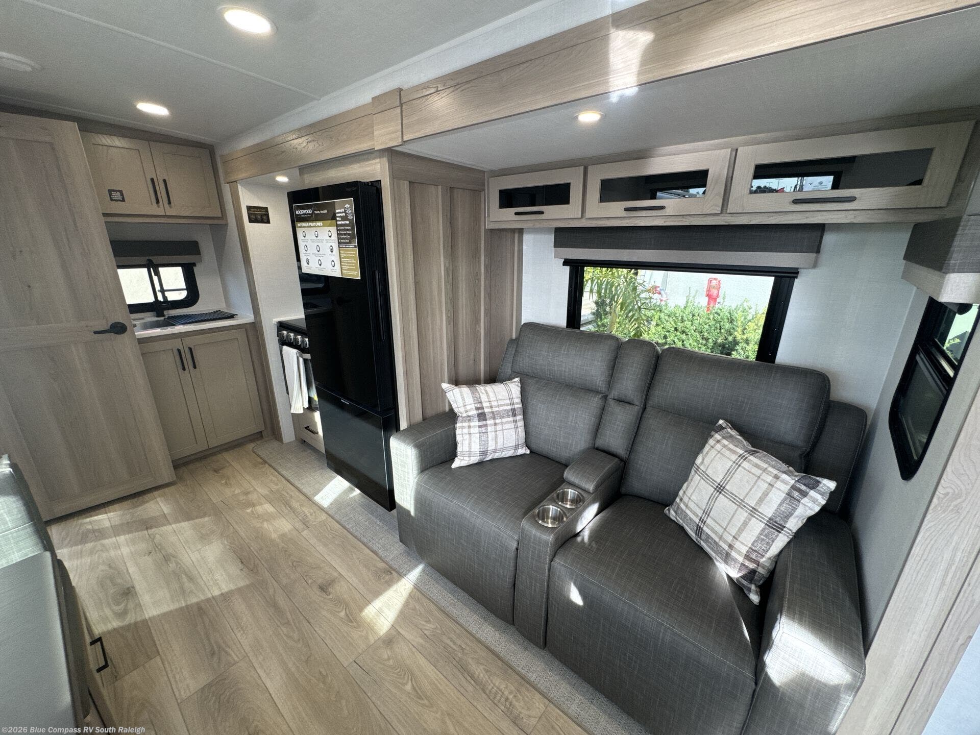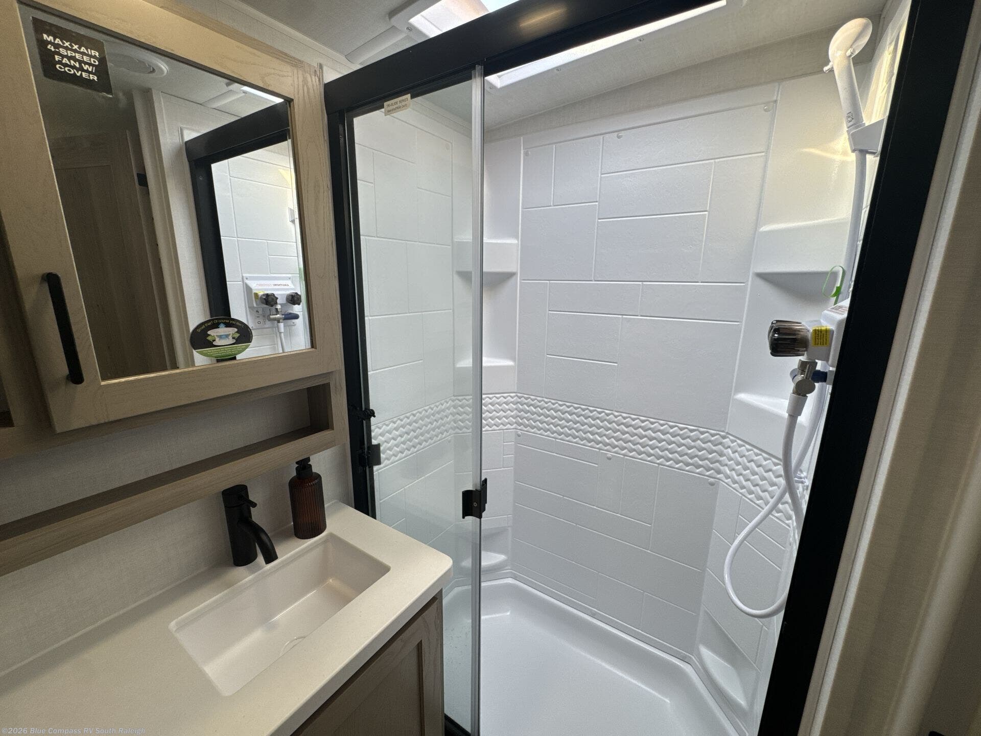 This stunning travel trailer is designed to provide the ultimate in comfort, convenience on the open road. The full bathroom is a haven for relaxation and refreshment, while the kitchen is equipped with a microwave, overhead cabinets, a three-burner cooktop, and a 12V refrigerator, making meal prep and dining the easiest task. The kitchen pantry provides ample storage for your favorite ingredients. Further, the booth dinette is a cozy spot for meals or socializing, and the theater seating is perfect for relaxing and enjoying your favorite shows or movies on the 12V Smart TV. Plus, the front bedroom is a serene retreat, featuring a spacious queen bed and convenient wardrobe, providing the perfect spot to rest and recharge after a day of adventure.