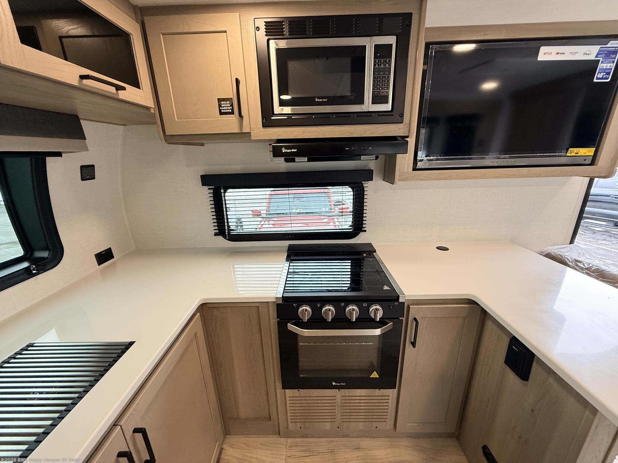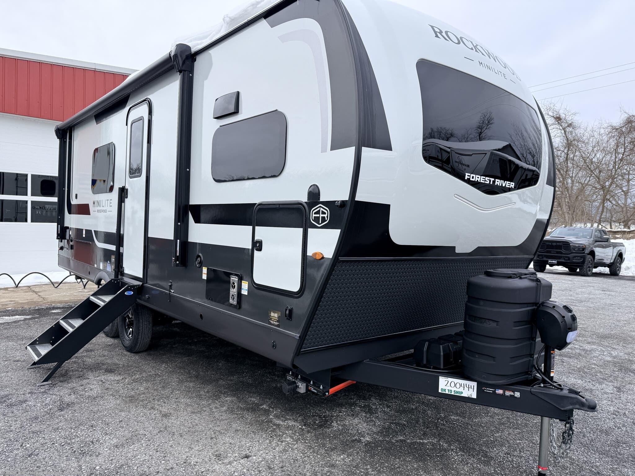 The campground will feel like home in this 2026 Forest River Rockwood Mini Lite 2523MBR. This 2026 Forest River Rockwood Mini Lite 2523MBR welcomes you into the Forest River family! The sleep capacity allows you to bring up to 2 along on your travels in this rig. Two slides expand this rig into a comfy living space. It doesn’t matter whether you are cooking for one or an entire campground, this kitchen has everything you need with the fridge, oven, stove. Spend time together in the living area with the theater seating and , or TV. The queen bed makes it a perfect camper for couples. Keep a comfortable temperature inside your rig with the heating option. The 54 gallon fresh water tank is just right for easy RV traveling. While the inside of this rig is enough on its own, the outside also features black tank flush, enclosed underbelly, exterior speakers, external shower, fiberglass sidewalls, front fiberglass cap w/window, front overhead storage, heated underbelly, hitch, ladder, power awning, power hitch jack, power stabilizer jacks, roof vent, screen door, slam latch baggage doors, slideout, stabilizer jacks and tinted windows. Make sure kids don’t track mud inside with the outside shower.