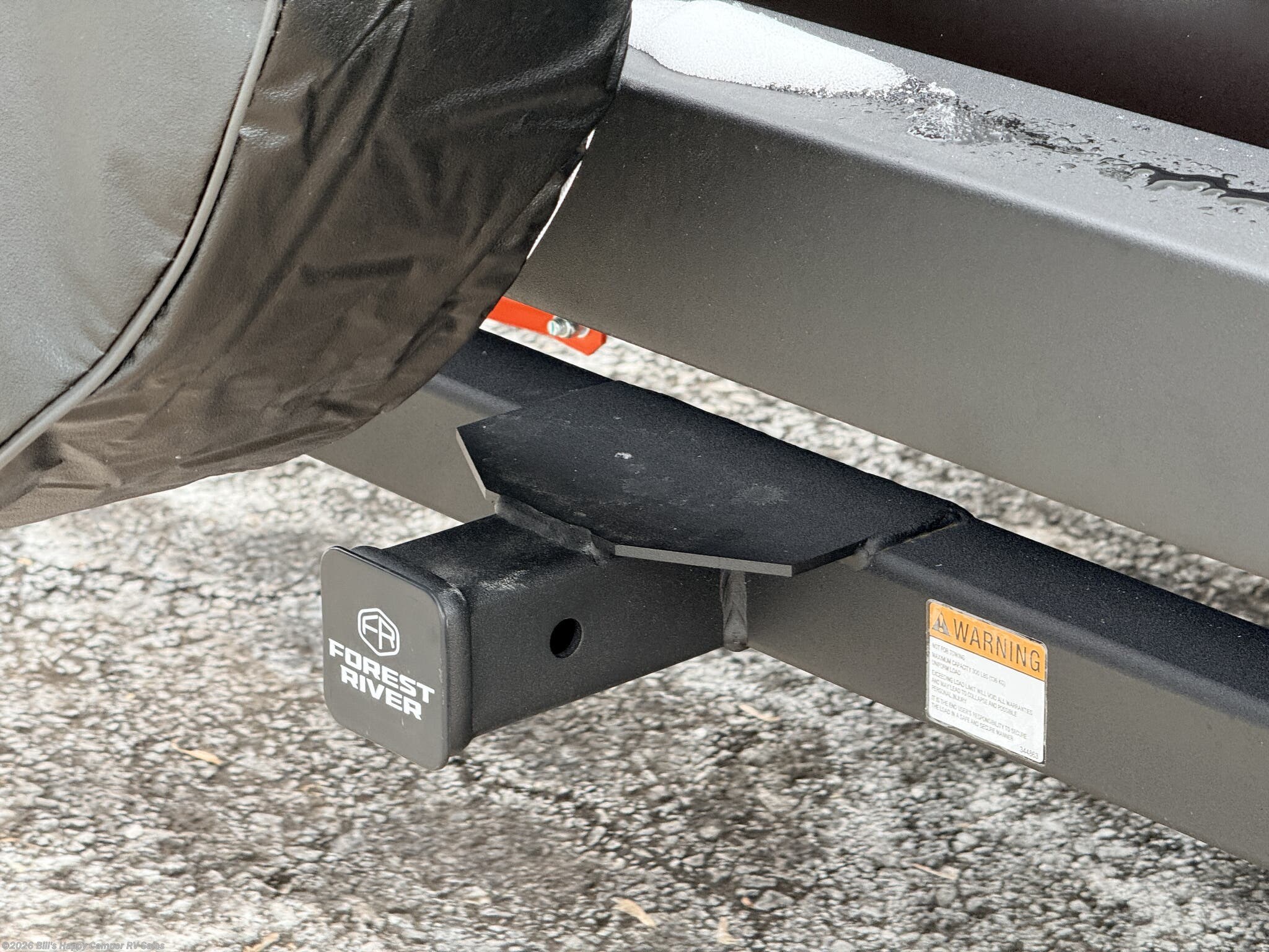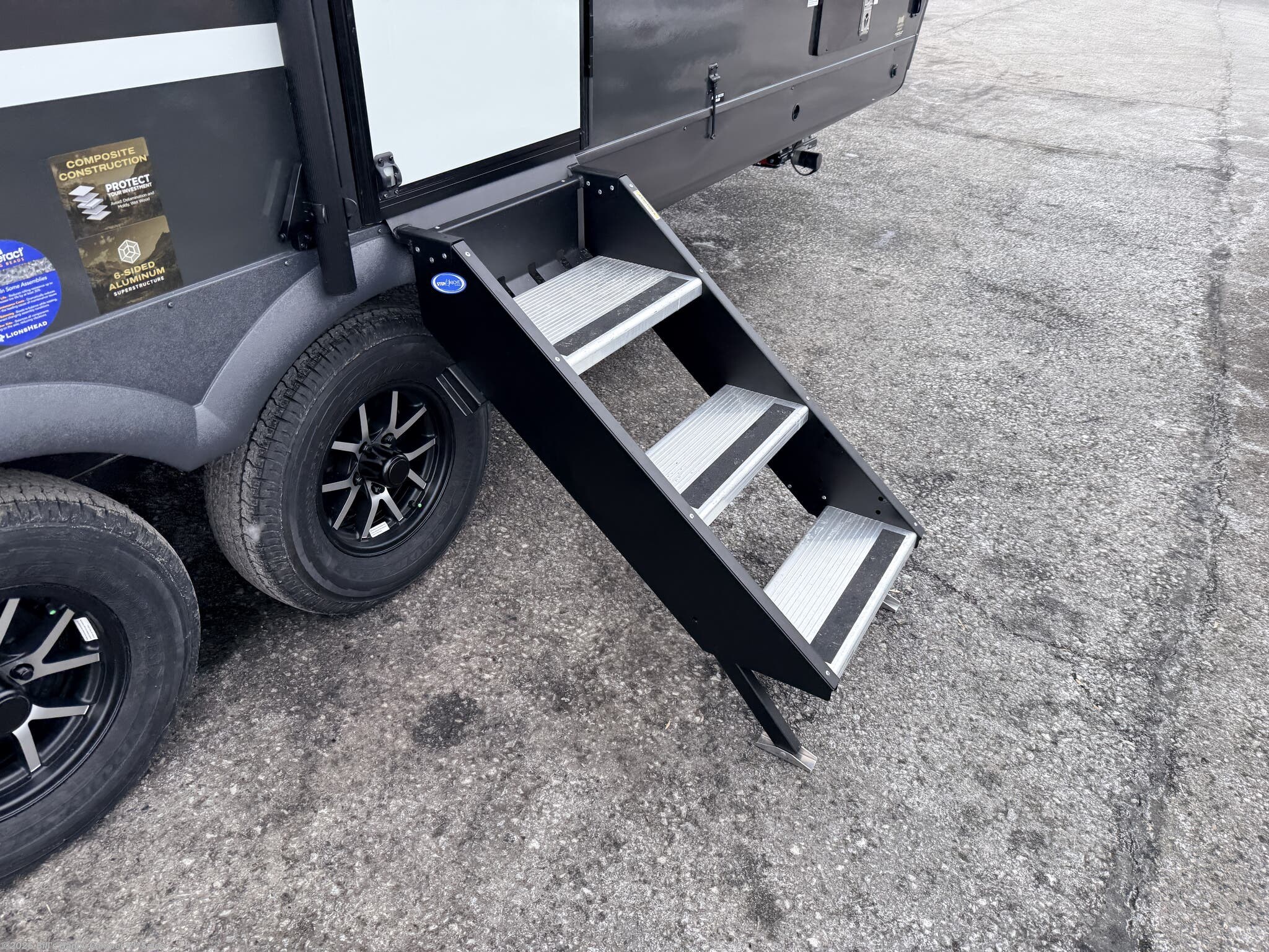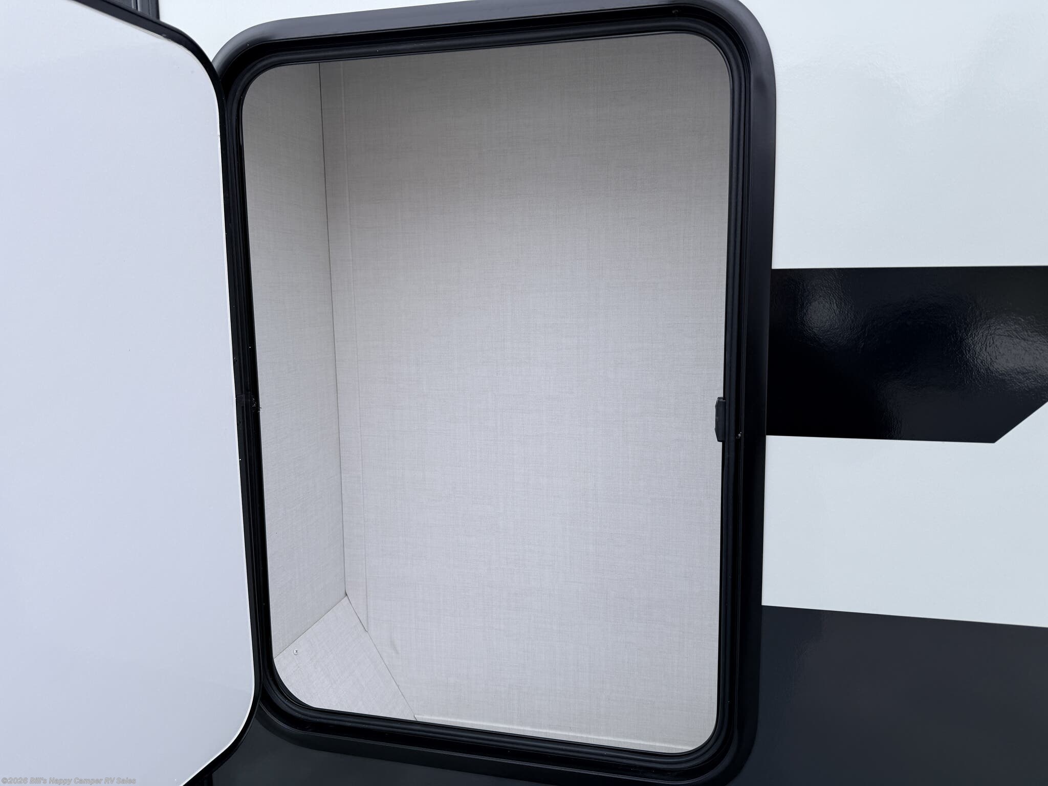 Black Tank Flush, Enclosed Underbelly, Exterior Speakers, External Shower, Fiberglass Sidewalls, Front Fiberglass Cap w/Window, Front Overhead Storage, Heated Underbelly, Hitch, Ladder, Power Awning, Power Hitch Jack, Power Stabilizer Jacks, Roof Vent, Screen Door, Slam Latch Baggage Doors, Slideout, Stabilizer Jacks, Tinted Windows -