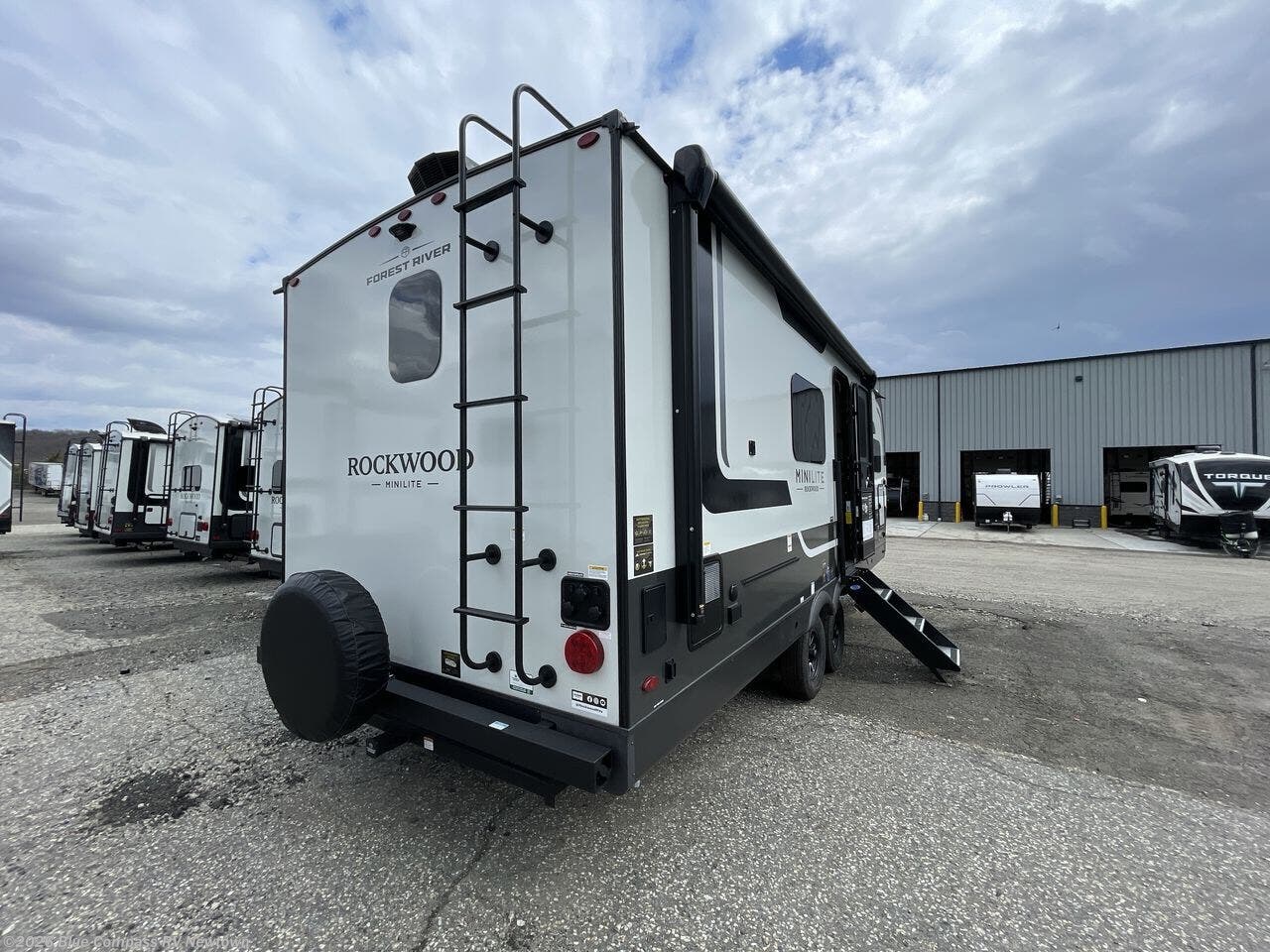 Each Rockwood Mini Lite travel trailer by Forest River is constructed with a fully laminated one-piece walkable roof, sleek frameless windows, and a six-sided full aluminum frame for strength and durability. The 12V thermostatically controlled heated tanks, plus radiant foil in the underbelly will allow you to camp well into the colder months, and the 200W roof solar panel will be perfect for a little off-gridding. Each model includes solid surface kitchen countertops, hidden hinge cabinet doors, roller shades, plus many more interior features. Having an AIR 360+ omnidirectional antenna with WiFi prep on board gives you the option to get some work done if it's needed, and the power tongue jack provides hassle-free set up, so you can enjoy more time relaxing!