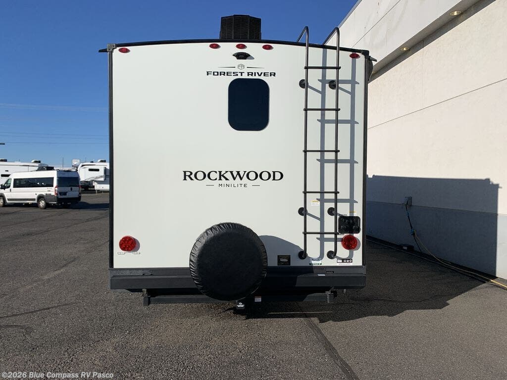 Each Rockwood Mini Lite travel trailer by Forest River is constructed with a fully laminated one-piece walkable roof, sleek frameless windows, and a six-sided full aluminum frame for strength and durability. The 12V thermostatically controlled heated tanks, plus radiant foil in the underbelly will allow you to camp well into the colder months, and the 200W roof solar panel will be perfect for a little off-gridding. Each model includes solid surface kitchen countertops, hidden hinge cabinet doors, roller shades, plus many more interior features. Having an AIR 360+ omnidirectional antenna with WiFi prep on board gives you the option to get some work done if it's needed, and the power tongue jack provides hassle-free set up, so you can enjoy more time relaxing!