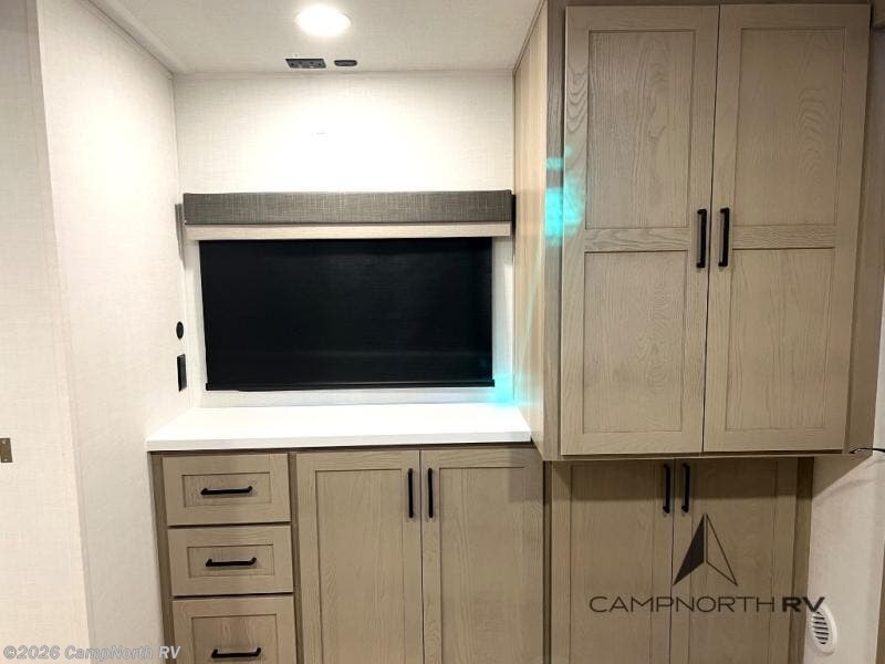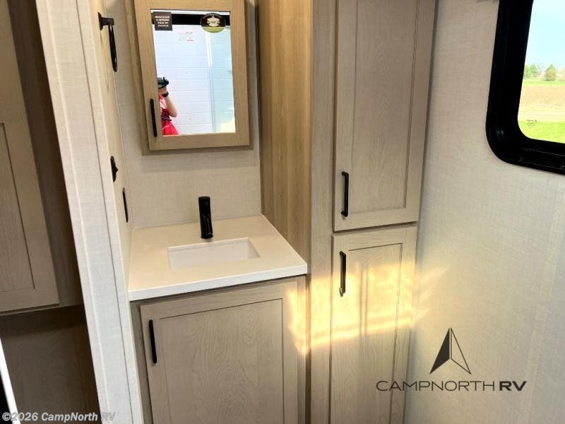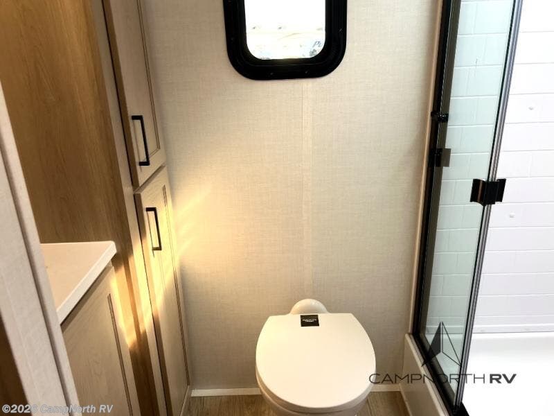 The full rear bathroom provides a spacious layout, complete with a convenient linen closet for added storage and comfort. This setup gives you the privacy and functionality of a larger RV while maintaining a manageable footprint.