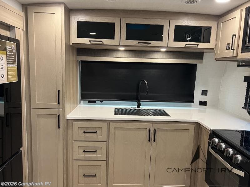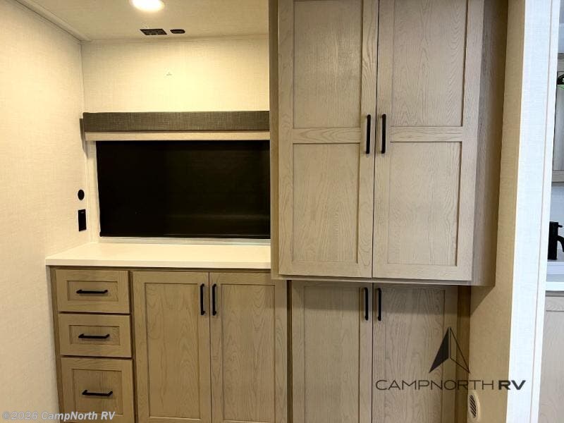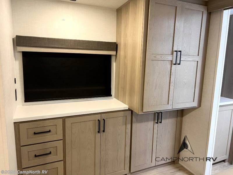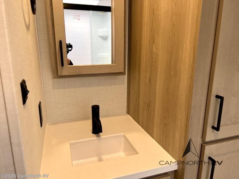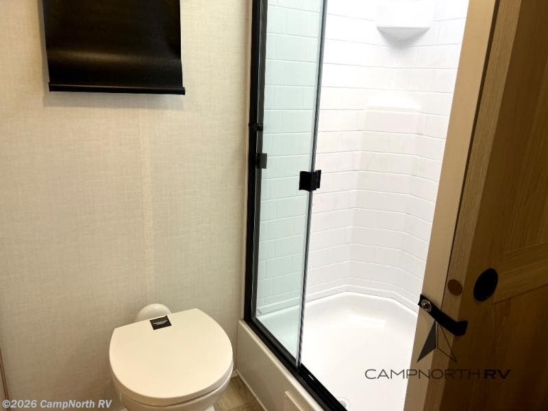 The full rear bathroom provides a spacious layout, complete with a convenient linen closet for added storage and comfort. This setup gives you the privacy and functionality of a larger RV while maintaining a manageable footprint.