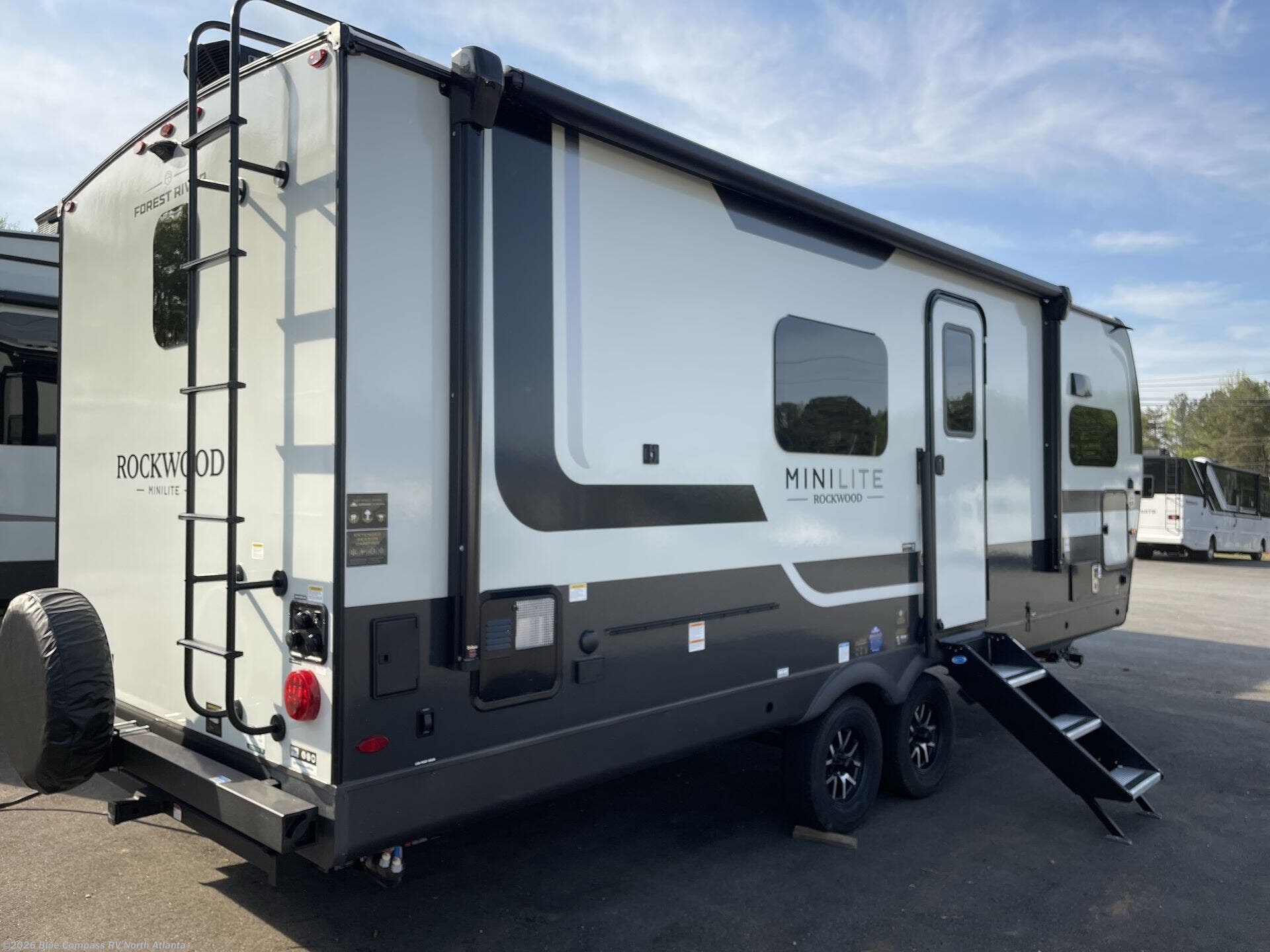 Each Rockwood Mini Lite travel trailer by Forest River is constructed with a fully laminated one-piece walkable roof, sleek frameless windows, and a six-sided full aluminum frame for strength and durability. The 12V thermostatically controlled heated tanks, plus radiant foil in the underbelly will allow you to camp well into the colder months, and the 200W roof solar panel will be perfect for a little off-gridding. Each model includes solid surface kitchen countertops, hidden hinge cabinet doors, roller shades, plus many more interior features. Having an AIR 360+ omnidirectional antenna with WiFi prep on board gives you the option to get some work done if it's needed, and the power tongue jack provides hassle-free set up, so you can enjoy more time relaxing!