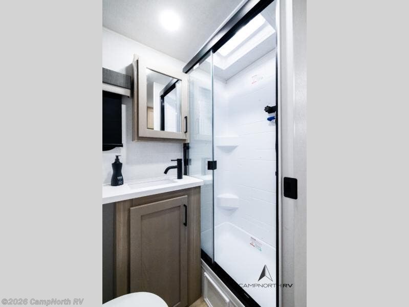 Unlike many smaller campers, the Roo 17E includes a full bath, giving you comfort and convenience wherever you travel. -