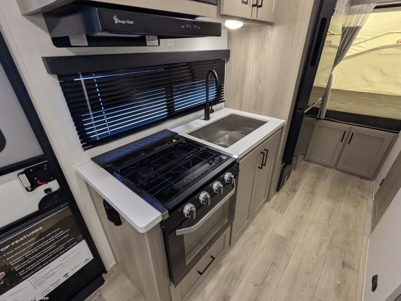 • Functional Kitchen & Dining Space including cooktop, sink, refrigerator, and dinette — perfect for preparing meals and gathering at camp.