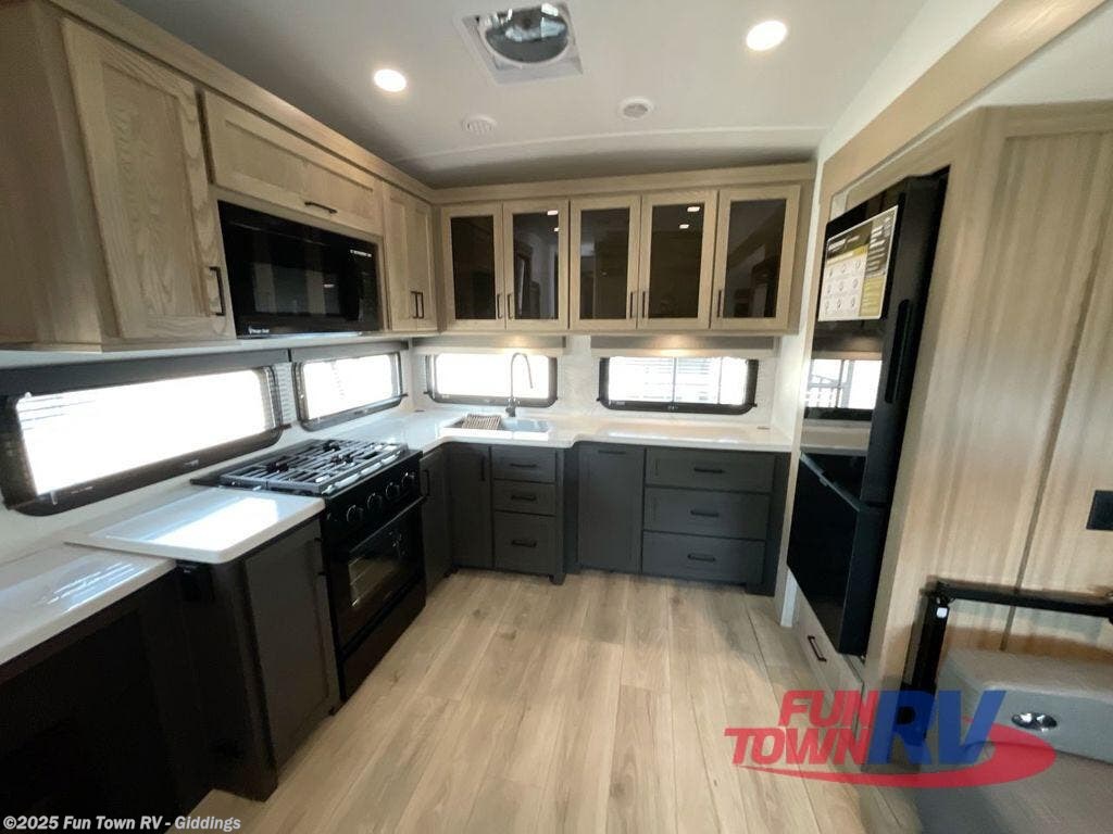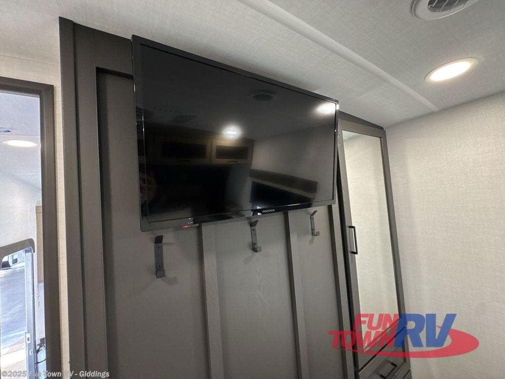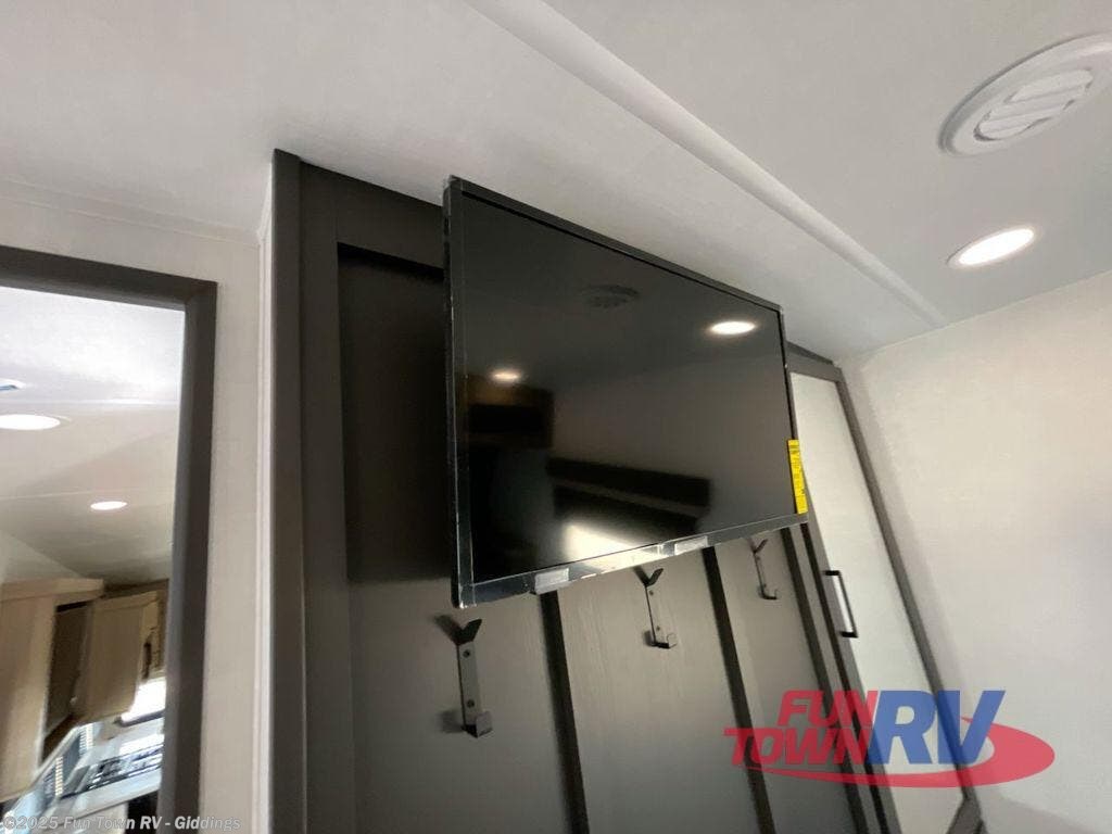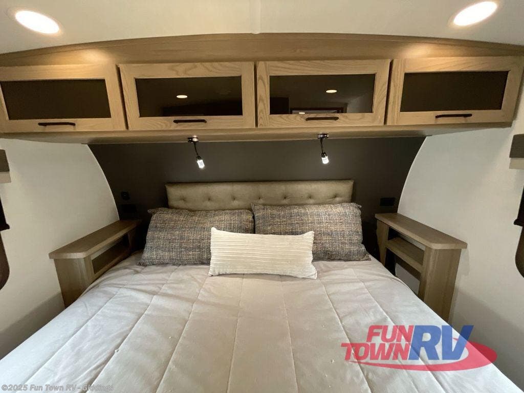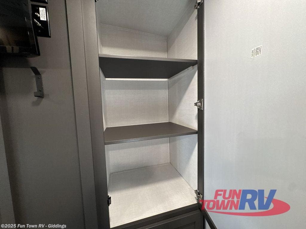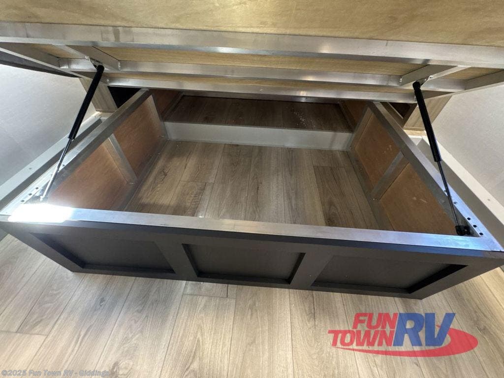 Why not have enough space for all your RVing friends to visit when you camp? This RV offers the perfect living and kitchen area with a large slide giving everyone more floor space, plus there is a king U-shaped dinette and a hide-a-bed sofa to sit on, a fireplace to enjoy and a Smart TV to watch a game or movie together. The cook will love the rear kitchen with extra counter space along a side wall to leave all the snacks and treats for everyone. You might even take everyone outside to enjoy the 21' power awning that offers an outdoor living area with some protection and LED lighting; just grab your camping chairs from the pass-through storage. At night, you can retire to the front bedroom with a queen bed, a spacious wardrobe, plus a TV option if you enjoy movies in bed!