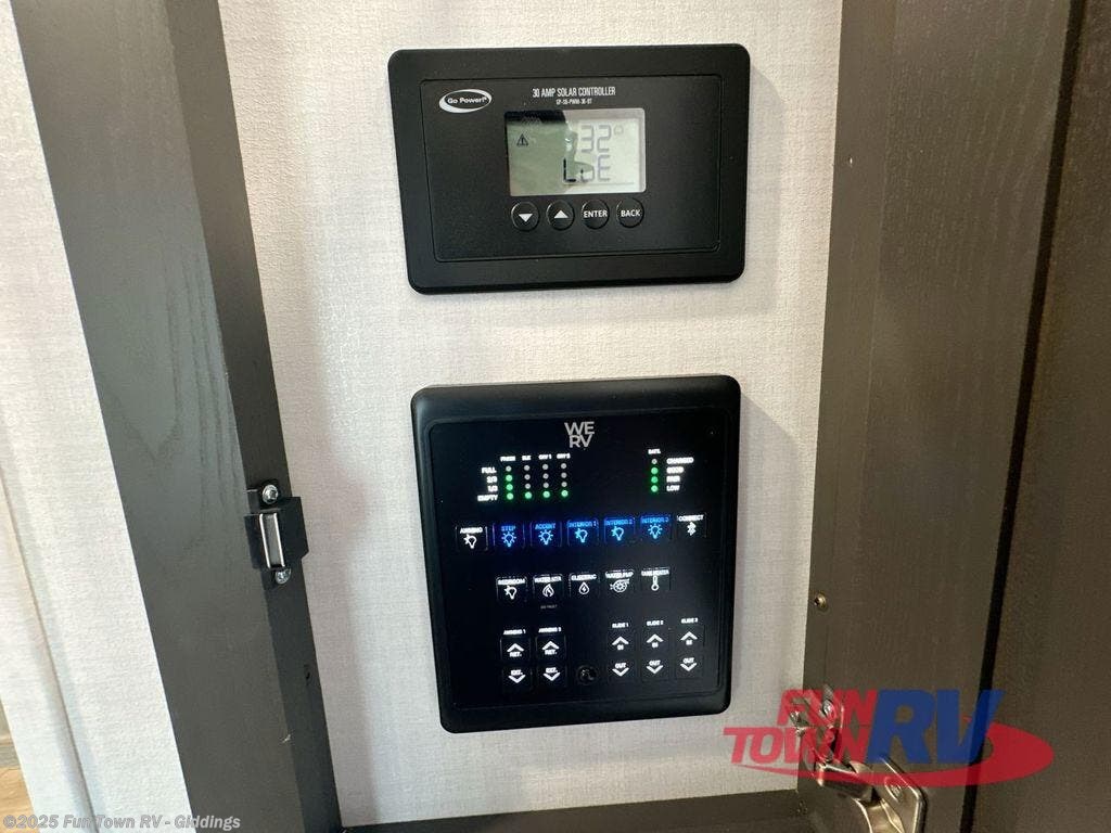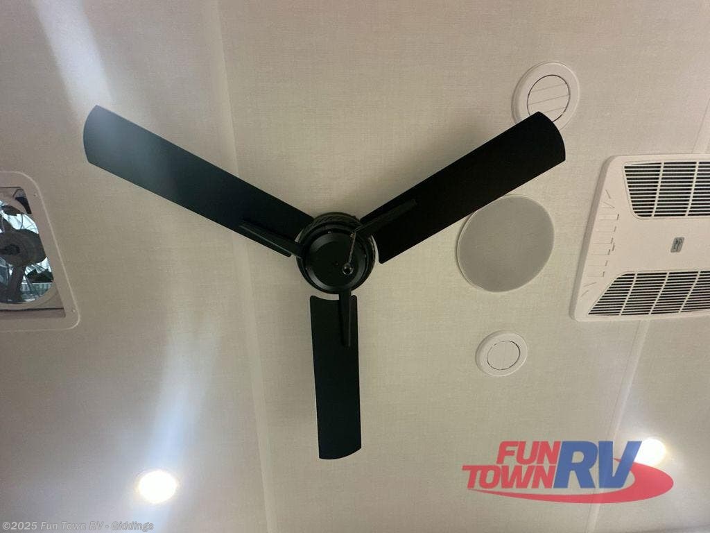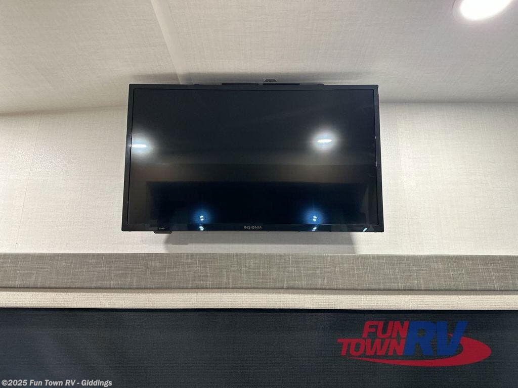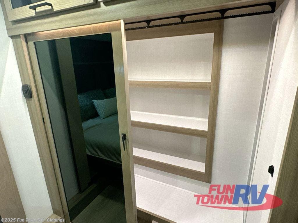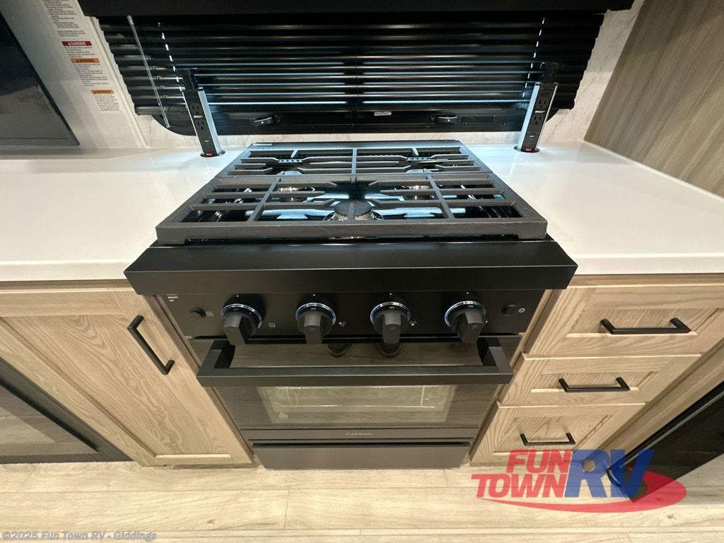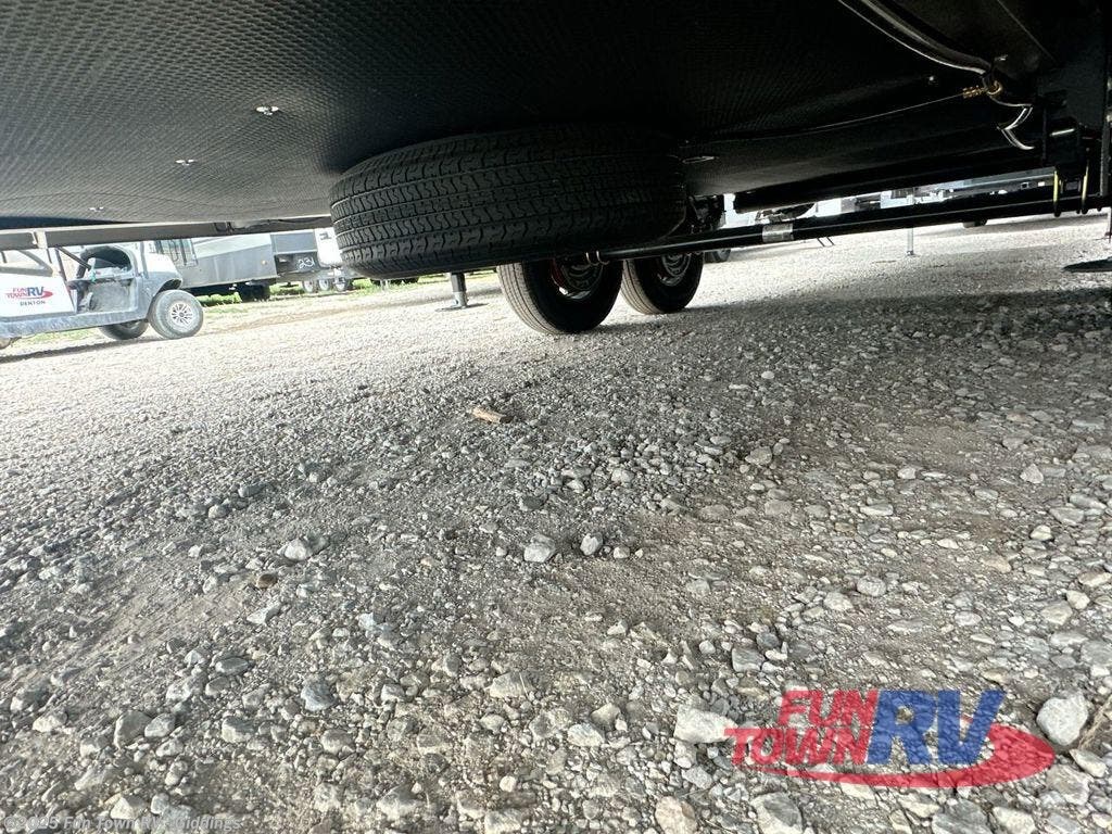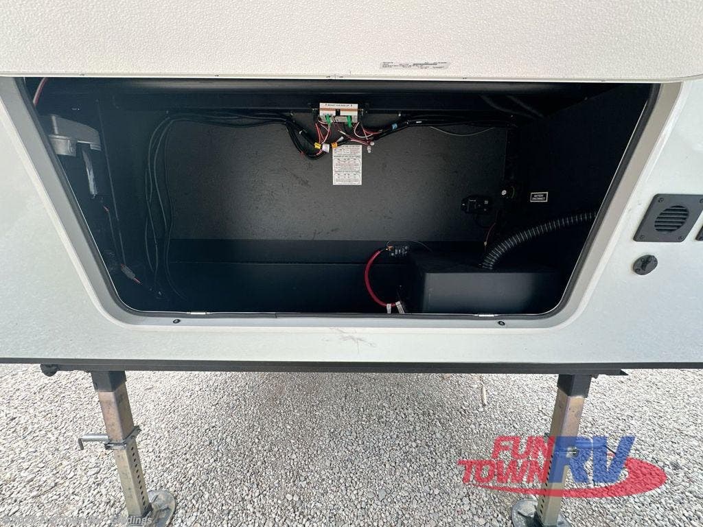You can enjoy views from inside or outside each day once this RV is set up at the campgrounds! The large windows in the furniture slide and the windows throughout allow you to take in the scenery, and the three slide outs give you a spacious main living and kitchen area as well as front bedroom. You will find lots of seating for guests on the hide-a-bed sofa in the rear, on the theater seats and the table, chairs and bench in the slide. The cook will love the 12V refrigerator and large pantry to store food, and everyone can enjoy the Smart TV and fireplace when visiting and relaxing. The front bedroom offers a king bed slide, a front wardrobe, plus washer and dryer prep if you choose to add those appliances.