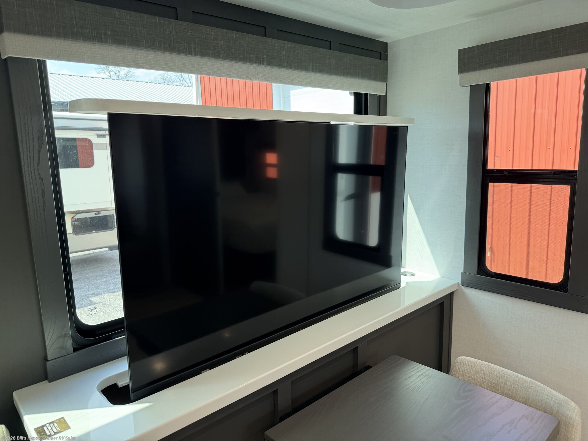 Automatic Leveling Jacks, Black Tank Flush, Enclosed Underbelly, External Shower, Fiberglass Sidewalls, Front Fiberglass Cap w/Window, Front Overhead Storage, Heated Underbelly, Hitch, Leveling Jacks, Pass Thru Storage, Power Awning, Powered Landing Legs, Screen Door, Second Roof A/C, Skylight, Slam Latch Baggage Doors, Slideout, Spare Tire Kit -
