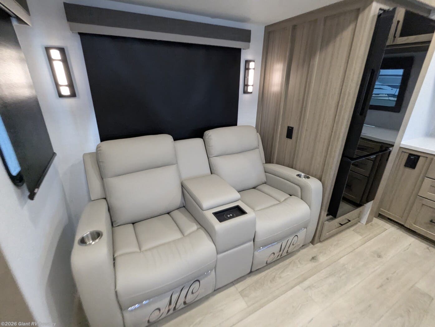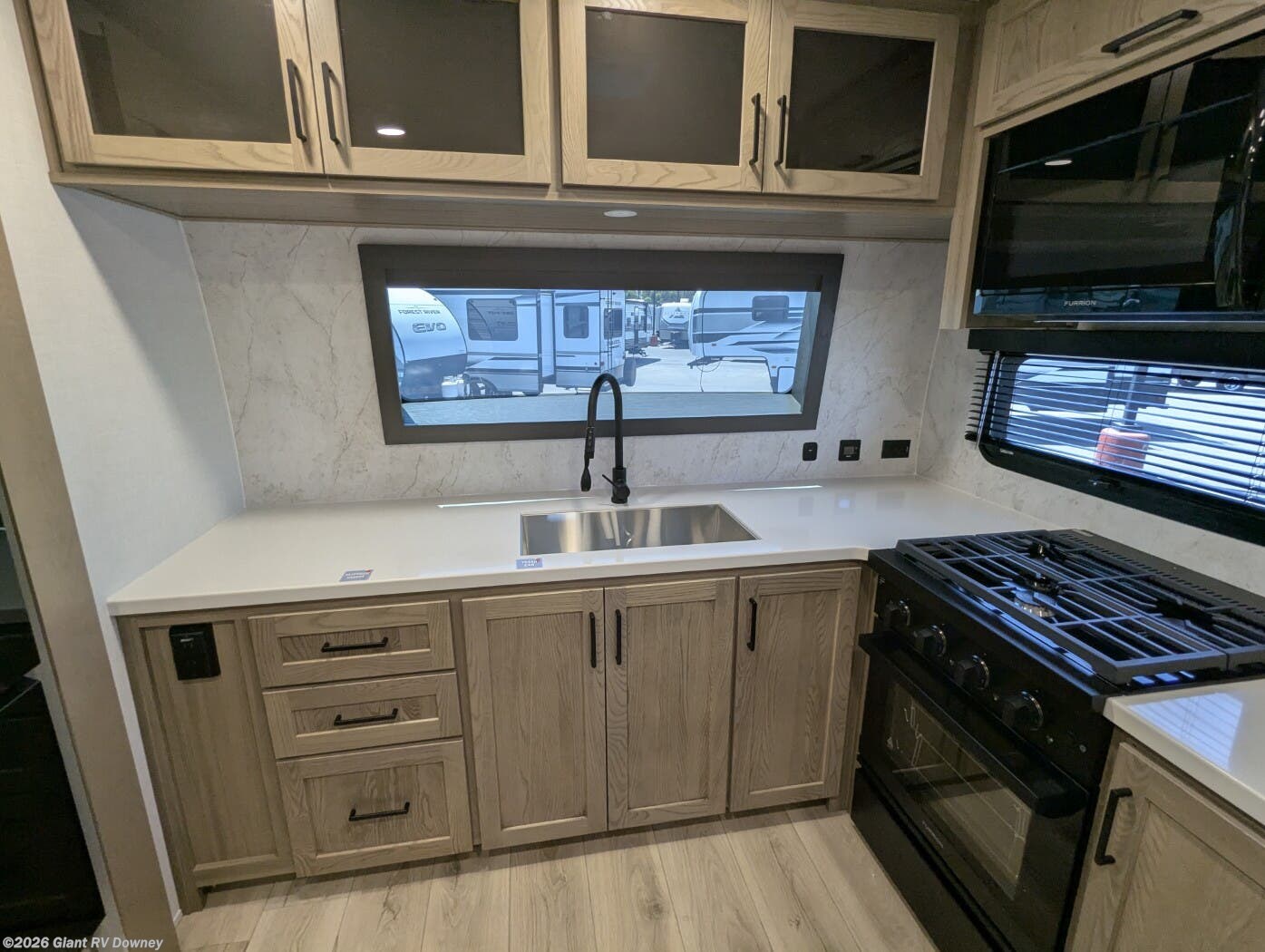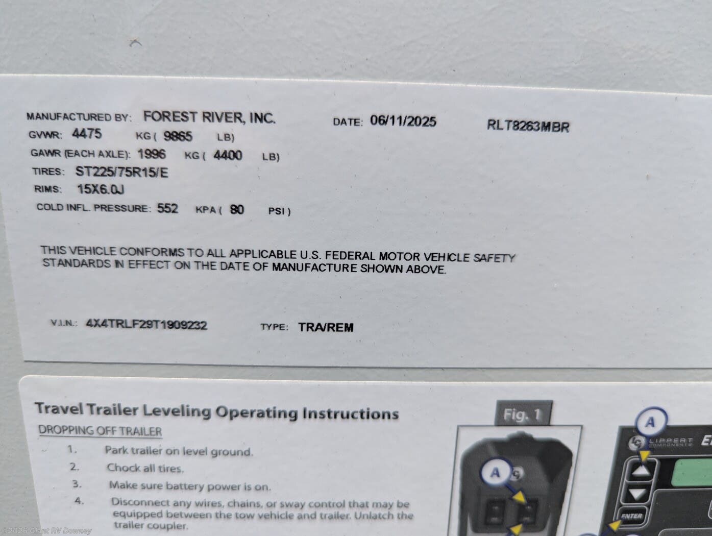 Plan a cozy getaway with the 2025 Forest River Rockwood Signature 8263MBR travel trailer at Giant RV in California! Ideal for couples, this RV features a front kitchen with a 12 cu. ft. fridge, 3-burner cooktop, and microwave, plus a rear queen bedroom. Two slide-outs expand the living area with theater seating and a dinette, sleeping up to 2. A full bath with shower ensures comfort. Enjoy a 19’ power awning and 54-gal fresh water tank. Equipped with dual 15,000 BTU A/Cs, a 35,000 BTU furnace, and 200W solar.