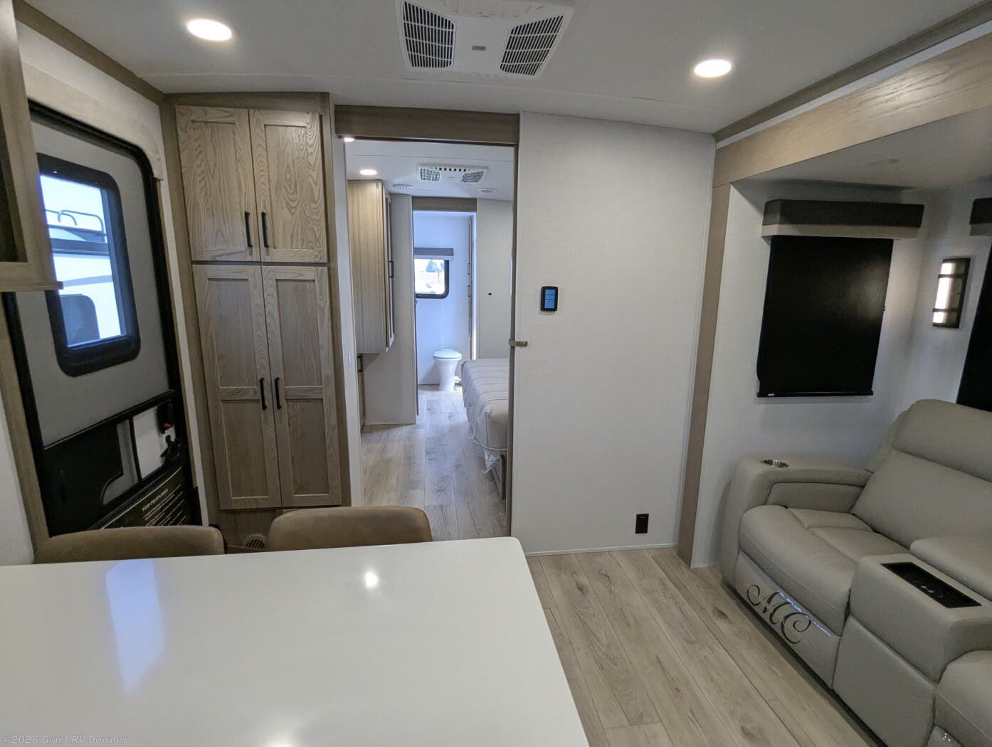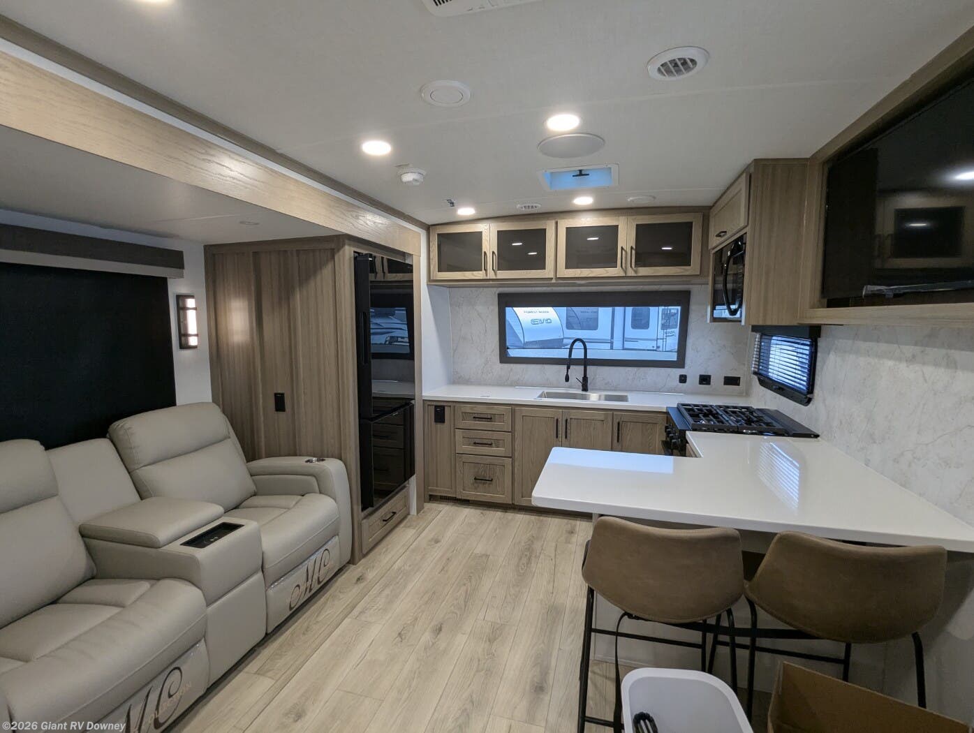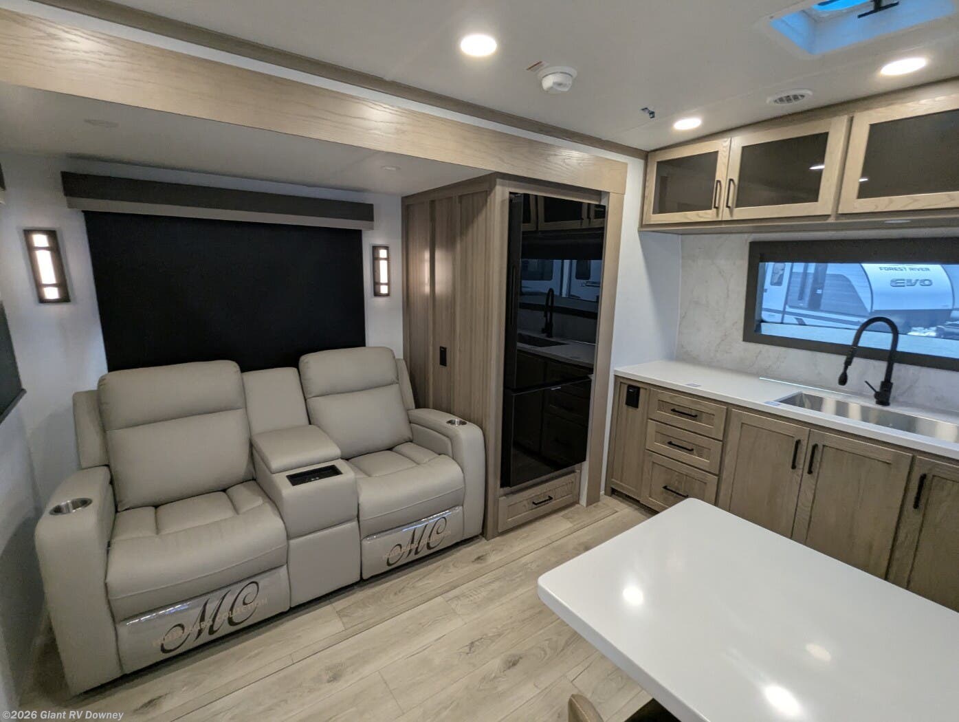 Plan a cozy getaway with the 2025 Forest River Rockwood Signature 8263MBR travel trailer at Giant RV in California! Ideal for couples, this RV features a front kitchen with a 12 cu. ft. fridge, 3-burner cooktop, and microwave, plus a rear queen bedroom. Two slide-outs expand the living area with theater seating and a dinette, sleeping up to 2. A full bath with shower ensures comfort. Enjoy a 19’ power awning and 54-gal fresh water tank. Equipped with dual 15,000 BTU A/Cs, a 35,000 BTU furnace, and 200W solar.