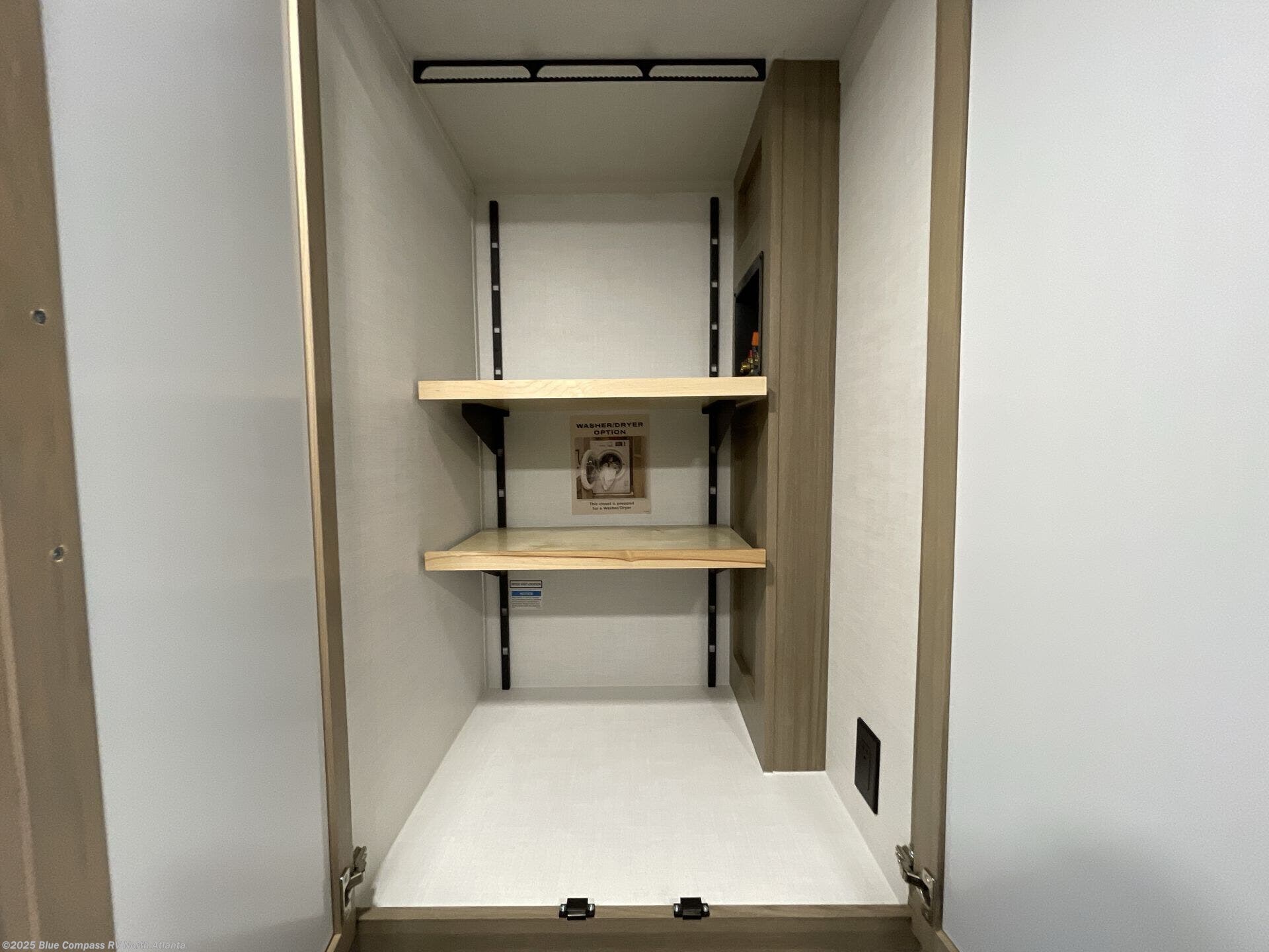 You're going to love the amount of natural light in this model with large windows in the back and the door side. The chef of the group will love the kitchen island, and there is tons of storage space for dishes, food, and knickknacks. The entertainment center with a Smart TV will allow you to watch movies at night, or you may just find yourselves outside under the two power awnings with LED lights. There is also an outside griddle prep here to cook pancakes in the morning. The king bed is sure to bring comfort, and you'll appreciate the large wardrobe to keep your clothes tidy. There is even washer and dryer prep if you choose to go full-time!