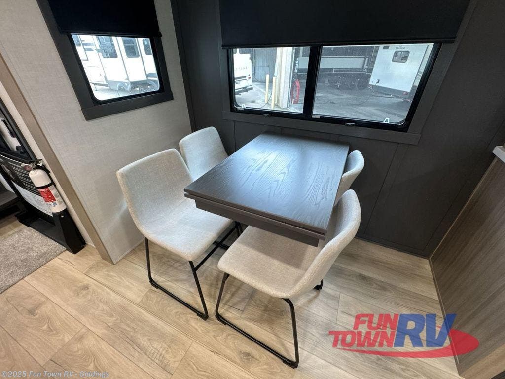 You can enjoy views from inside or outside each day once this RV is set up at the campgrounds! The large windows in the furniture slide and the windows throughout allow you to take in the scenery, and the dual opposing slides give you a spacious main living and kitchen area. You will find lots of seating for guests on the hide-a-bed sofa in the rear, and on the theater seats and table in the slide. The cook will love the 12V refrigerator and large pantry to store food, and everyone can enjoy the Smart TV and fireplace when visiting and relaxing. This unit also includes a pull-out desk which will be perfect if you plan to telecommute. And don't overlook the front private bedroom with its queen bed, wardrobe, and TV option!