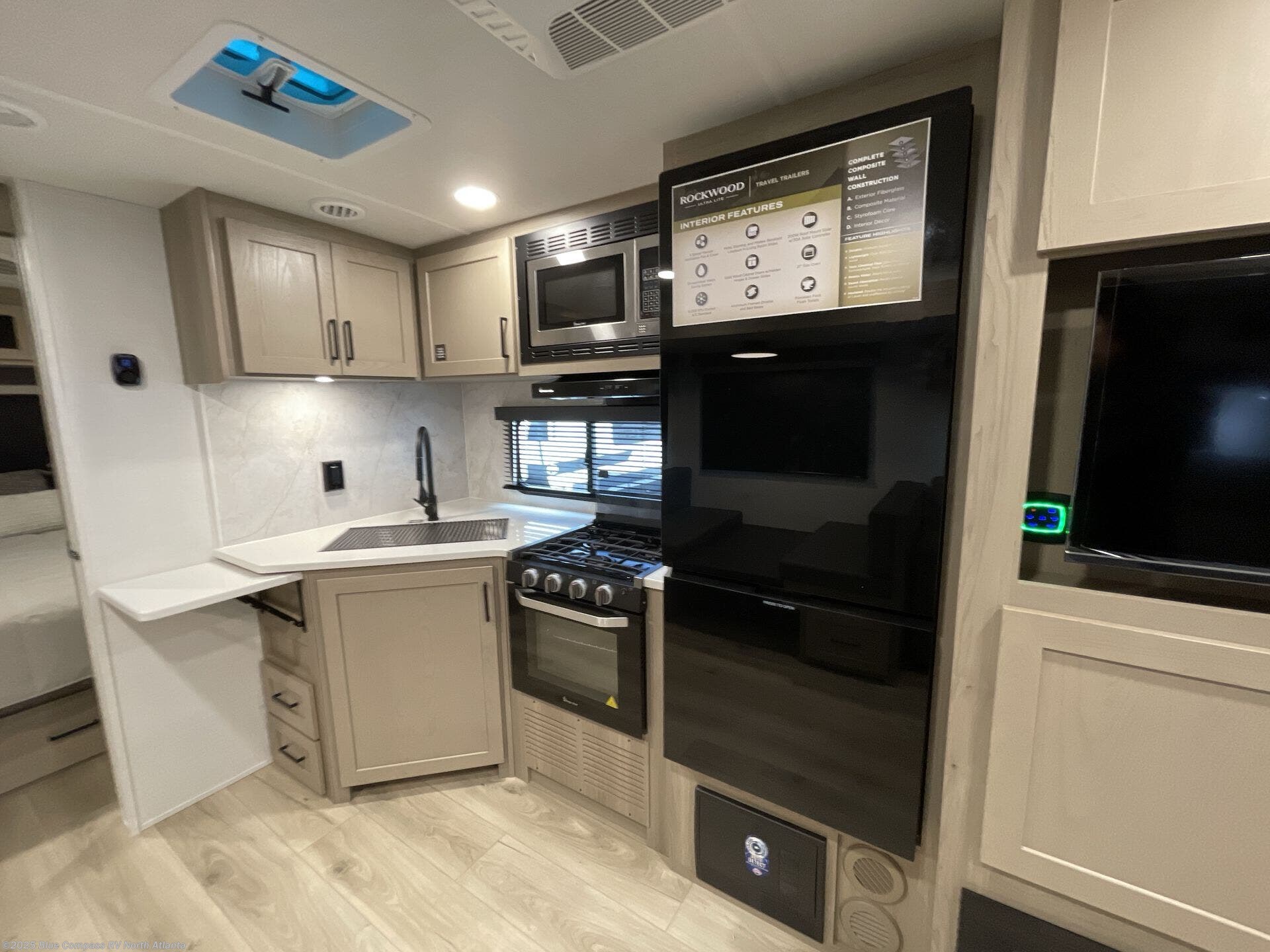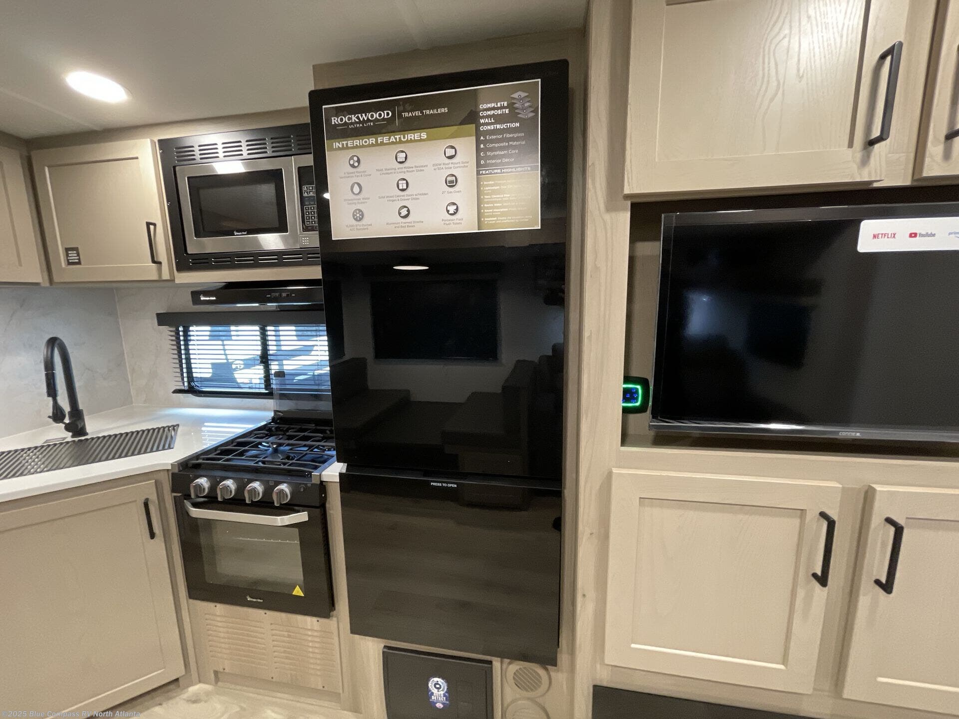 Each Rockwood Ultra Lite travel trailer by Forest River includes superior construction with a high gloss fiberglass cap, aluminum cage construction, and a power awning with LED lighting for a cozy and functional outdoor space. The torsion axle, power tongue jack will make towing smooth and hassle-free, along with the nitrogen filled, Goodyear Endurance tires and the tire pressure monitor system. Interior comforts include kitchen sink with high rise faucet, hidden hinge cabinet doors, and roller shades to name a few. Choose a Rockwood Ultra Lite travel trailer today!
