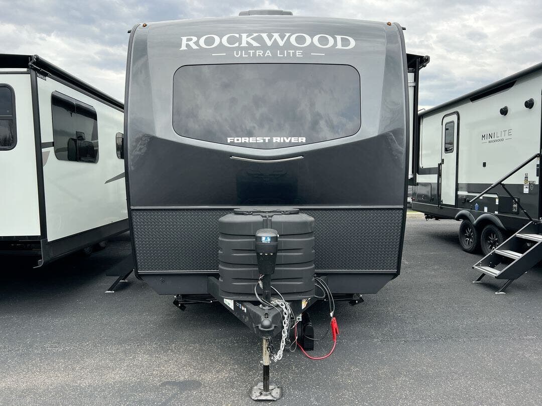 Each Rockwood Ultra Lite travel trailer by Forest River includes superior construction with a high gloss fiberglass cap, aluminum cage construction, and a power awning with LED lighting for a cozy and functional outdoor space. The torsion axle, power tongue jack will make towing smooth and hassle-free, along with the nitrogen filled, Goodyear Endurance tires and the tire pressure monitor system. Interior comforts include kitchen sink with high rise faucet, hidden hinge cabinet doors, and roller shades to name a few. Choose a Rockwood Ultra Lite travel trailer today!