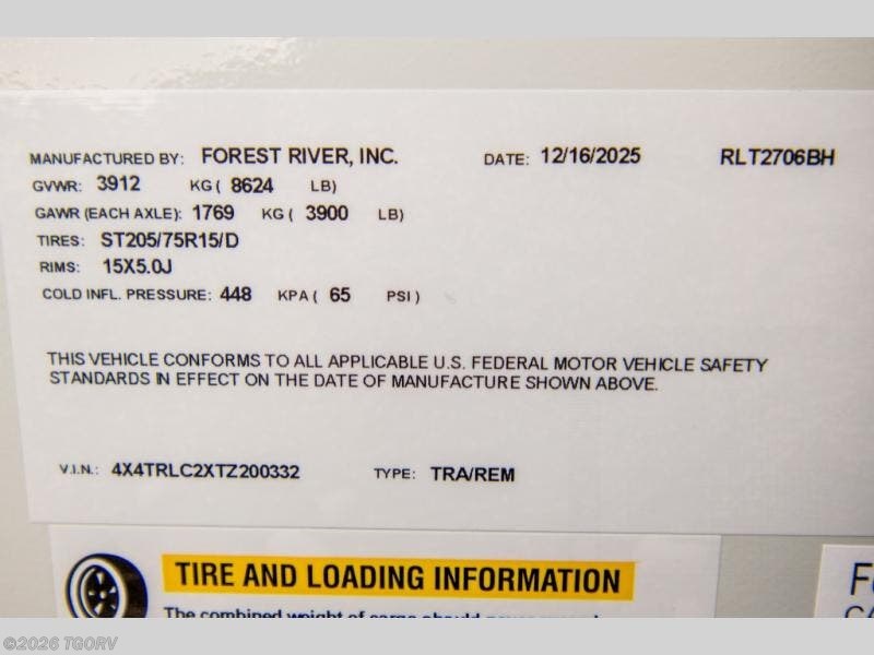 Request More Info on this 2026 Forest River Rockwood Ultra Lite 2706BH Offered for sale by TGORV