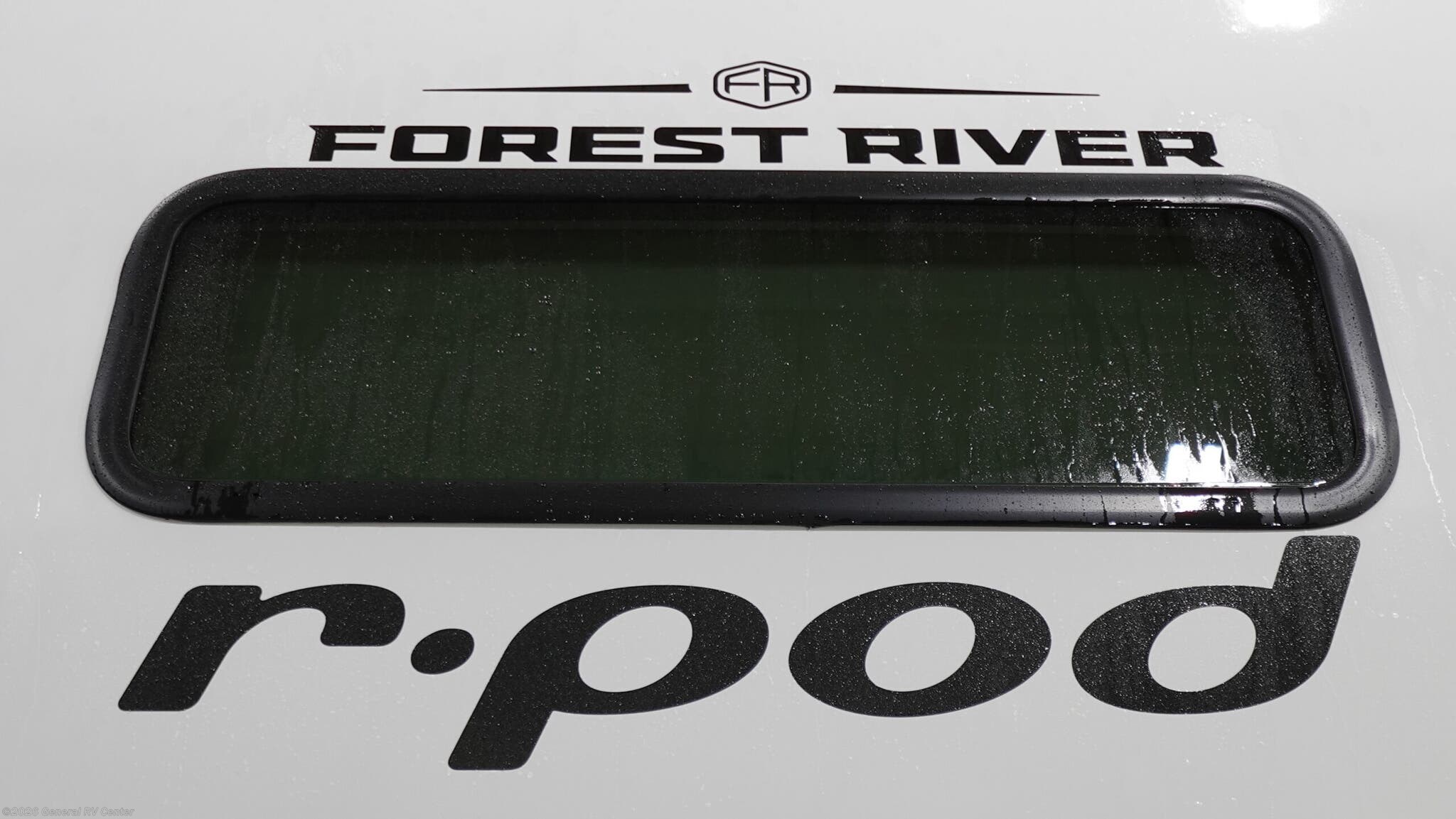 Forest River R-Pod travel trailer RP-171 highlights: Queen Bed Booth Dinette Two-Burner Cooktop Slam Latch Cargo Doors This travel trailer is perfect for weekend trips or month-long vacations to enjoy the great outdoors with conveniences of home. You can easily sleep three people with a rear queen bed and a front dinette folded down for the little ones. This unit also includes a two-burner cooktop and convection microwave to make meals inside. You will also find a convenient wet bath where you can easily get ready for bed each night, and the night light will help you not stumble over the sleeping dog! With any R-Pod travel trailer by Forest River, you will enjoy affordable luxury at the lowest tow weight in its class! There is a sealed underbelly with forced heat, a curved dual-pane acrylic front window with a bug screen and night shade, plus a large roof mounted solar panel for off-grid capabilities. The 15K A/C unit will keep you comfortable during the summer camping months, and the tankless water heater will provide endless hot showers after hiking, biking, swimming and more! Each model also includes a black glass friction hinge entrance door, roof ladder prep, exterior motion lighting, plus a hot and cold exterior spray port to wash off sand from the beach. Inside, you'll enjoy seamless Surf-X kitchen countertops, blackout roller shades, and a central vacuum system for hassle-free cleaning!