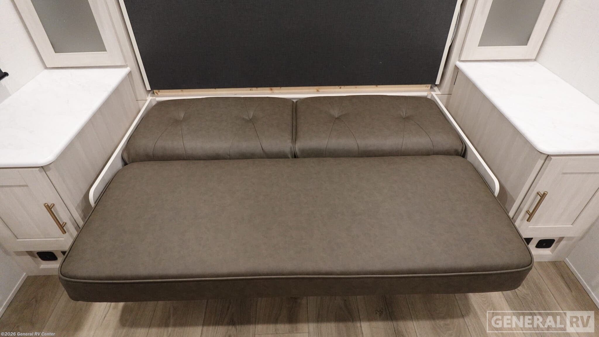 Forest River R-Pod travel trailer RP-197 highlights: Full Rear Bath Front Murphy Bed Convection Microwave Slam Latch Cargo Doors This versatile travel trailer is perfect for two adventure-seeking campers! You will love having a queen-size Murphy bed up front since you can fold it away during the day and relax on the sofa. There are also dual wardrobes to keep your clothes out of the way plus dual end end tables to set your coffee or book on. A full kitchen includes a convection microwave, 12V black glass refrigerator, and a counter with two chairs where you can dine each day. You will also love the flip-up window above the table, along with a 12V TV to keep you entertained, plus a pantry to keep food stocked. Head to the full rear bath that includes a large linen closet, a shower, and a night light for added convenience. The exterior is just as accommodating with its large roof mounted solar panel, rear accessory hitch, slam latch cargo doors, and more! With any R-Pod travel trailer by Forest River, you will enjoy affordable luxury at the lowest tow weight in its class! There is a sealed underbelly with forced heat, a curved dual-pane acrylic front window with a bug screen and night shade, plus a large roof mounted solar panel for off-grid capabilities. The 15K A/C unit will keep you comfortable during the summer camping months, and the tankless water heater will provide endless hot showers after hiking, biking, swimming and more! Each model also includes a black glass friction hinge entrance door, roof ladder prep, exterior motion lighting, plus a hot and cold exterior spray port to wash off sand from the beach. Inside, you'll enjoy seamless Surf-X kitchen countertops, blackout roller shades, and a central vacuum system for hassle-free cleaning!