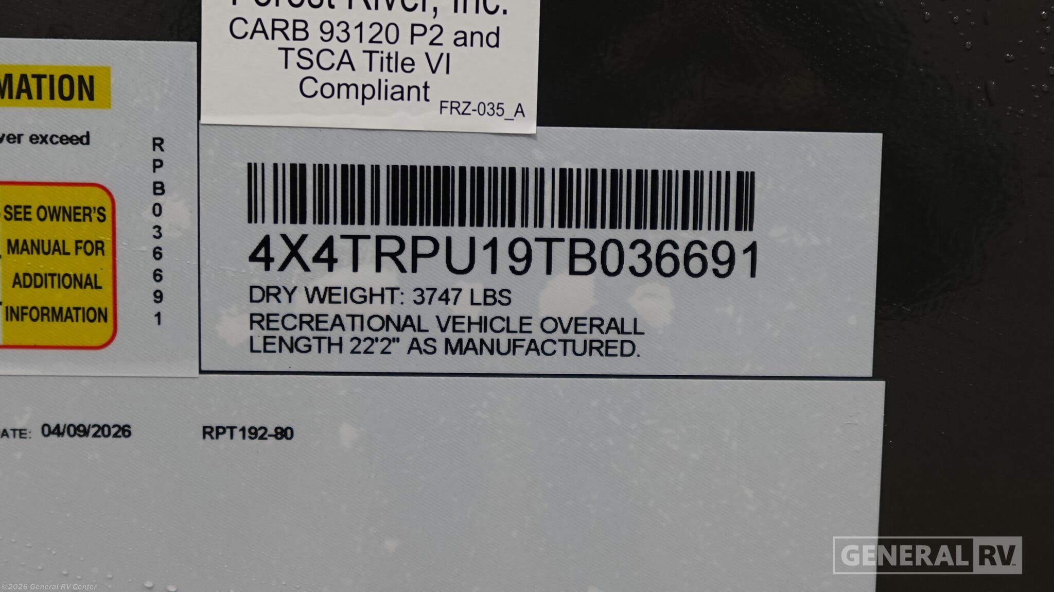 2026 Forest River R*POD RPT192 Literature