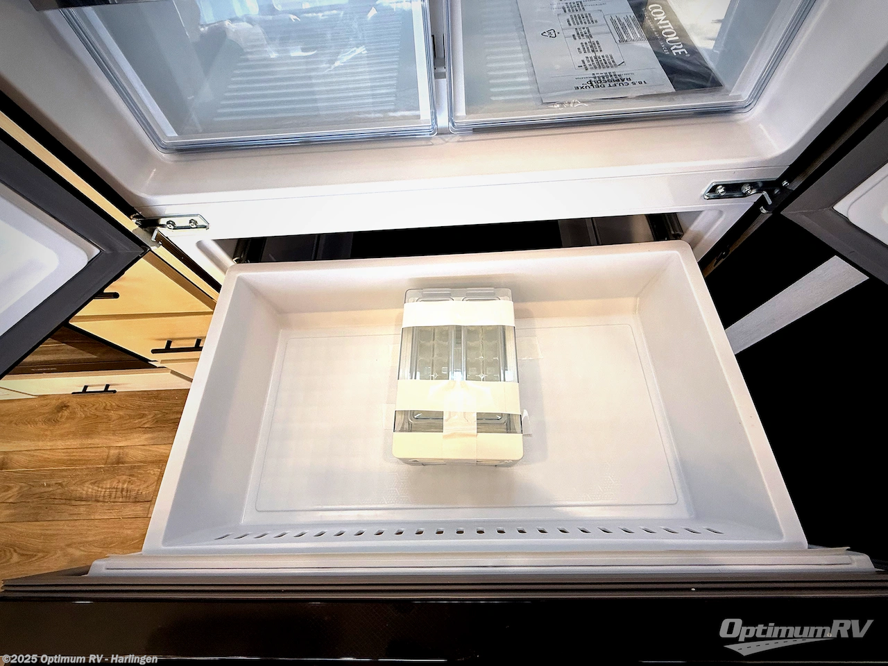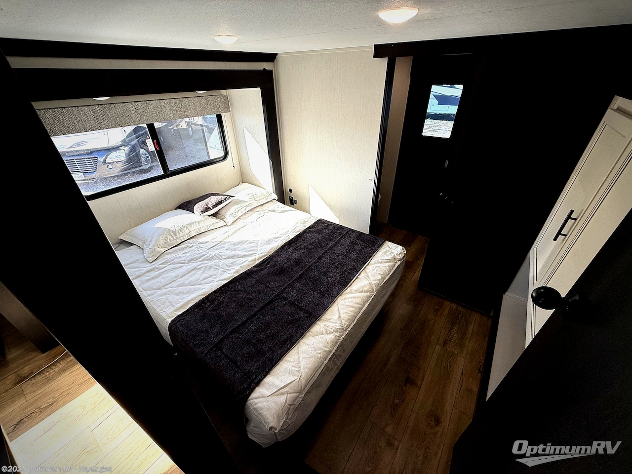 Are you looking for a fifth wheel where you can bring along your neighbor friends? You can do just that since there are two bedrooms in this unit, one of which includes a master bath with its own exterior entry door! The front bedroom is right next to the second full bath for convenience, and includes a camper king bed slide, a dresser, and front wardrobe. The rear master bedroom has a queen bed slide out across from a second slide for more floor space, and there is a loft above this room for more sleeping or storage space. Everyone can meet in the middle kitchen and living room since there are recliners, a ceiling fan, and kitchen island with four chairs. There is also storage below the island for kitchen necessities, and the hidden pantry behind the TV will be perfect for snacks, board games and more!