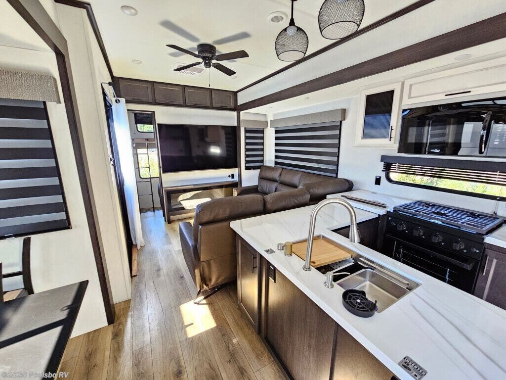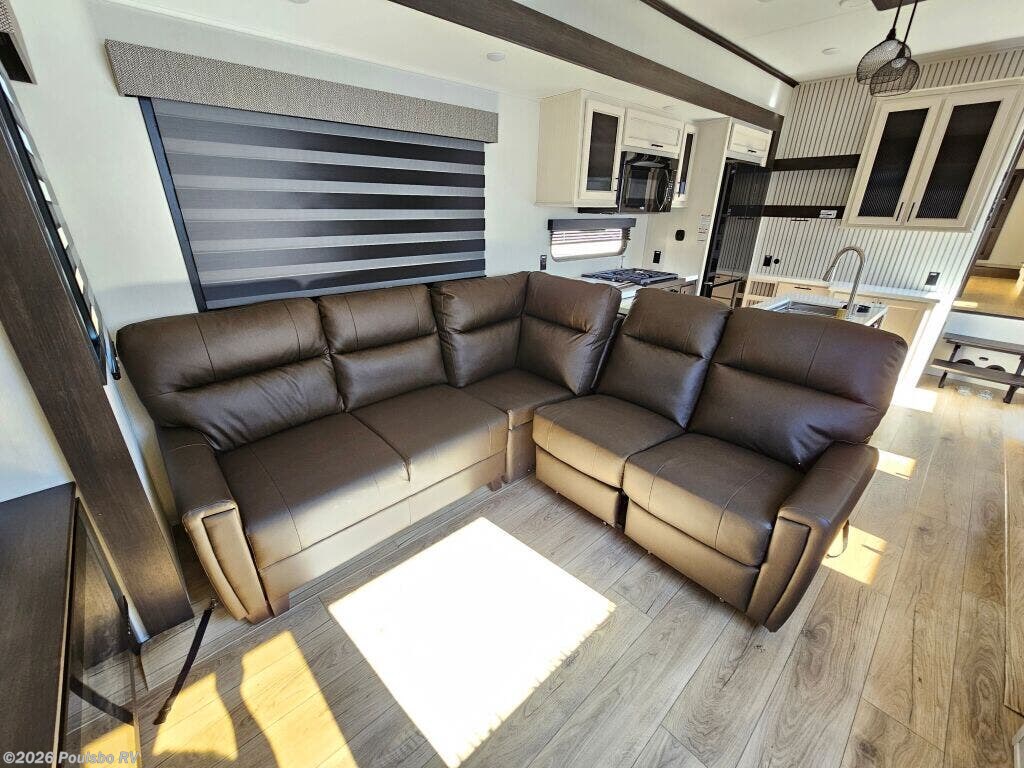 Discover the impressive 2026 Forest River Sabre 37RVMILES, a remarkable new RV designed for adventure and comfort on the road. With a length of 42.98 feet and a Gross Vehicle Weight Rating (GVWR) of 16,370 pounds, this spacious fifth wheel accommodates up to 8 guests, making it perfect for family trips or gatherings with friends. The interior features modern design and convenience, with a welcoming living area that invites relaxation after a day of exploring the great outdoors. You will find four slide-outs that expand the living spaces significantly, providing ample room for everyone to unwind. Relax in the cozy master bedroom that comes equipped with a king-size bed, ensuring restful sleep every night. The kitchen is well-appointed with full-size appliances, including a refrigerator and a convection oven, making meal preparation a breeze. A standard bathroom conveniently located in the center of the RV offers practicality with quality fixtures. Outdoor enjoyment is enhanced with two awnings measuring a total of 28 feet, allowing for shaded relaxation outside. Modern amenities include Bluetooth audio, a fireplace, and a back-up camera for ease of use during travel. Ideal for those who appreciate a blend of luxury and functionality in their RV experience, the 2026 Forest River Sabre 37RVMILES is ready to take you on unforgettable journeys. Stock#: S855, VIN: 5ZT3SR2B2T6116584.