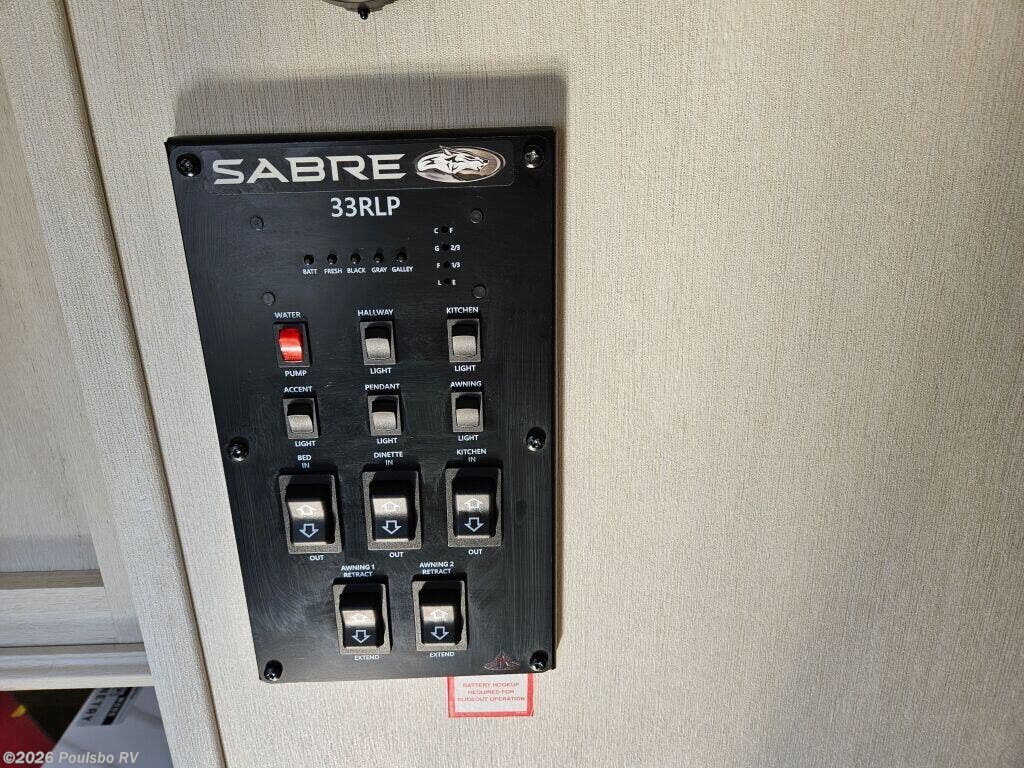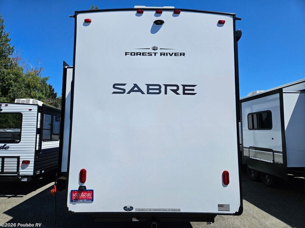 Introducing the 2026 Forest River Sabre 33RLP, a cutting-edge travel trailer designed for adventure seekers and families alike. This spacious RV spans 40.03 feet and has a maximum weight capacity of 14,695 pounds, making it an ideal choice for extended road trips or weekend getaways. The interior boasts a sleeping capacity for four individuals, ensuring comfort for both families and guests. The condition of this RV is brand new, providing you with the peace of mind that comes with owning a fresh, factory-built unit. This model is not equipped with a bunkhouse, allowing for an open and generous living area that can be adapted to your needs. The design includes three slide-outs, creating additional space for relaxation and functionality. Convenient features such as front power and rear power leveling jacks make setting up at your campsite quick and effortless. RVing offers a unique opportunity to be immersed in nature while enjoying the comforts of home, and the 2026 Forest River Sabre 33RLP enhances this experience with its well-thought-out layout and amenities. Whether you are a first-time RVer or a seasoned traveler, this model is sure to impress with its ample storage, entertainment options, and thoughtful design. Make your adventures memorable with the perfect combination of comfort and utility in the 2026 Forest River Sabre 33RLP. Stock#: E5963, VIN: 5ZT3SRYB7T6116605.