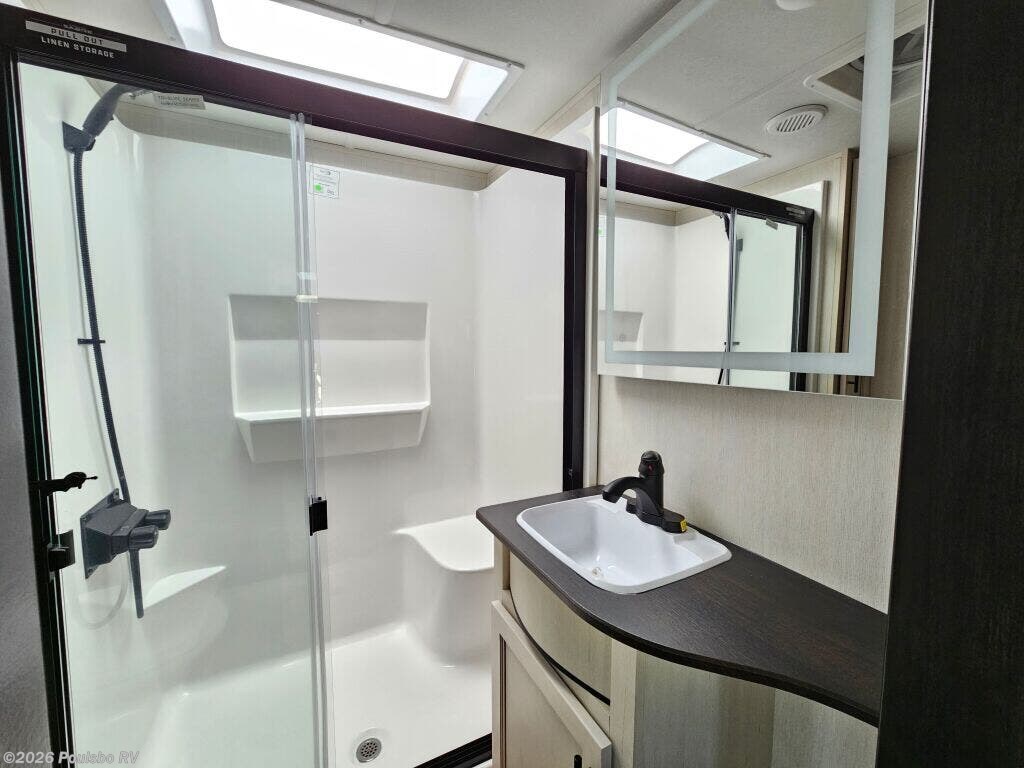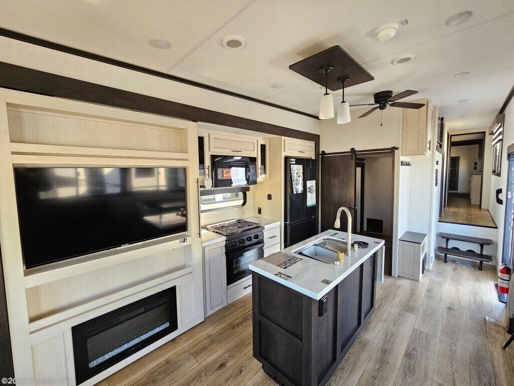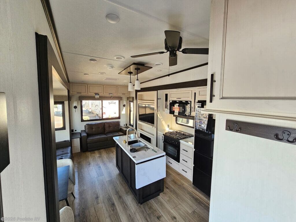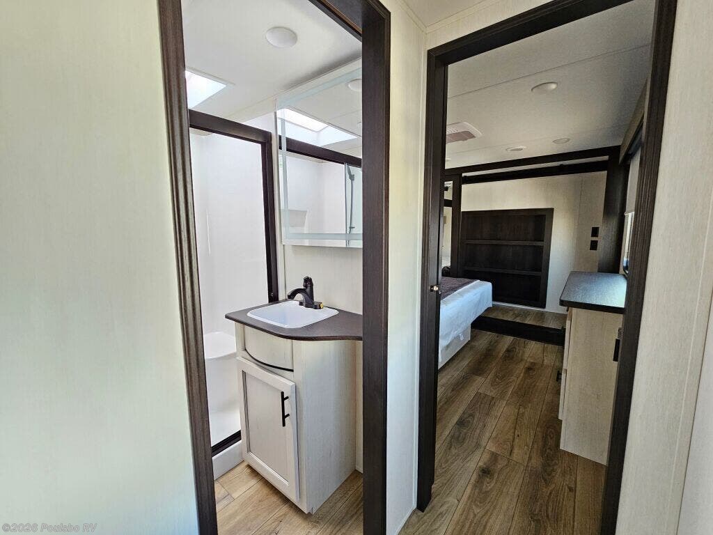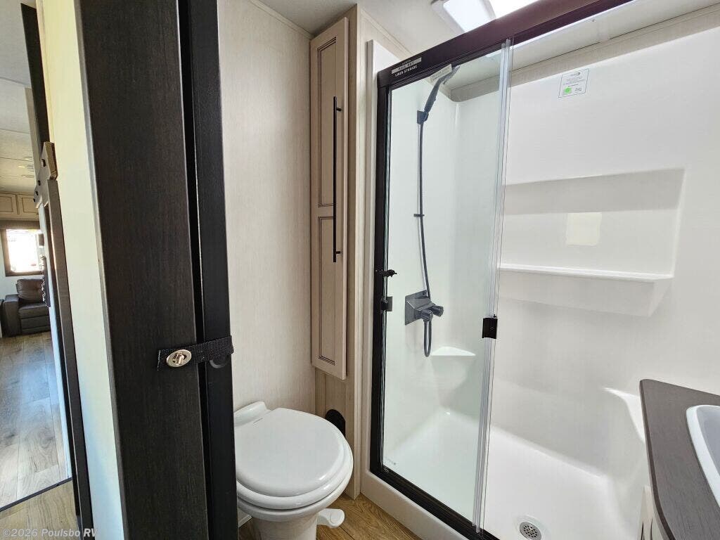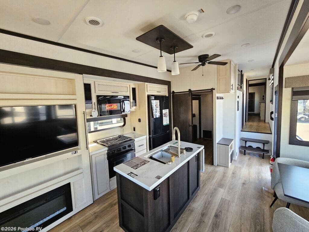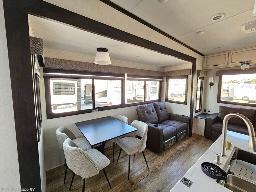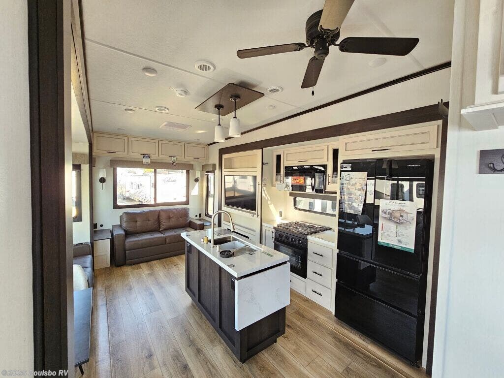 Introducing the 2026 Forest River Sabre 23FLX, a versatile and spacious fifth wheel that is perfect for families and adventurers looking for an exceptional RVing experience. This newly designed model measures an impressive 41 feet in length, making it comfortable for extended trips and accommodating up to 9 guests with ease. It features three slide-outs that enhance its living space, providing ample room to relax and enjoy your time on the road. The Sabre 23FLX is built with convenience and comfort in mind, ensuring that you have everything you need for a memorable journey. The dry weight of 12,503 pounds and a hitch weight of 2,350 pounds assist with stable towing. The RV includes a single awning that provides shade and protection from the elements, allowing you to enjoy outdoor spaces more effectively. Inside, you will find well-appointed living areas, a fully equipped kitchen for meal preparations, and cozy sleeping accommodations that cater to your family's needs. This RV is ready for all of your adventures, whether they are weekend getaways or cross-country trips. As a family-owned, award-winning local RV dealer with multiple locations in Sumner, Everett, Kent, and Mt. Vernon Washington, Poulsbo RV is here to help you find the perfect RV. Stock#: M3705, VIN: 5ZT3SR1B3T6116787.