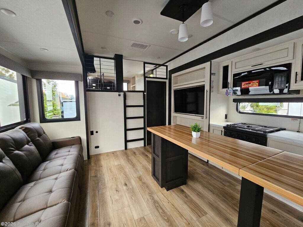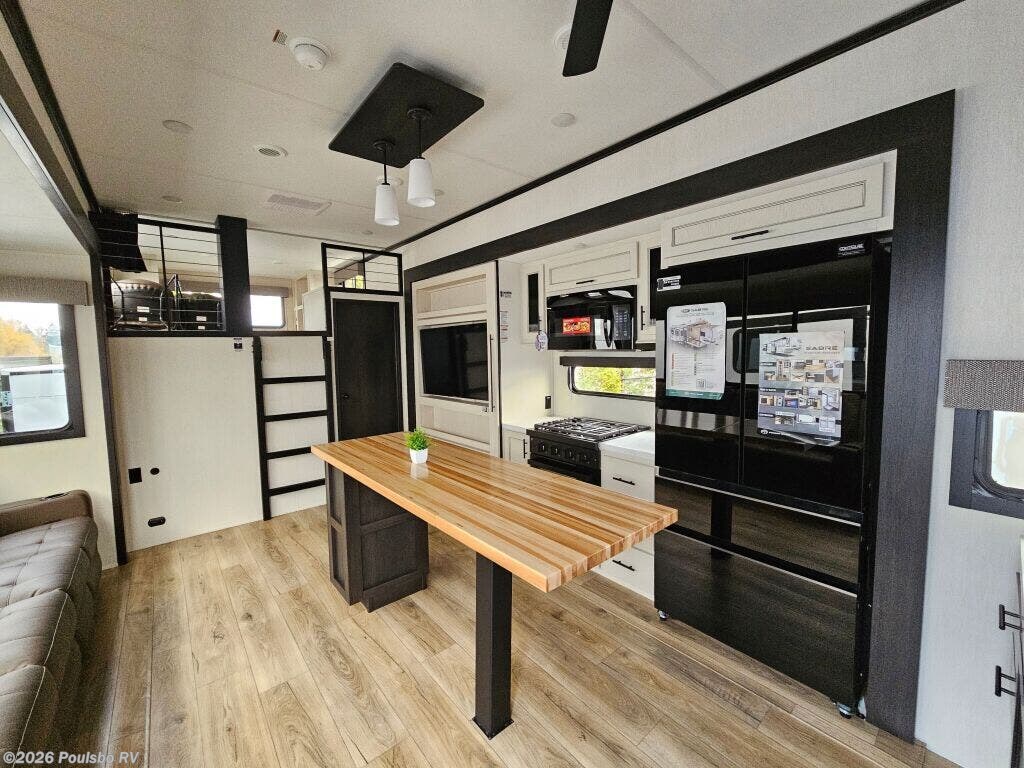 Introducing the 2026 Forest River Sabre 36DBB, a versatile and spacious travel trailer that offers the perfect blend of comfort and luxury for your adventures. With a length of 43.31 feet and a robust GVWR of 16,425 pounds, this new RV is designed to accommodate families and groups who wish to explore the great outdoors without sacrificing the comforts of home. Featuring five slide-outs, this model maximizes living space, providing ample room for relaxation and entertainment. The dual awnings enhance your outdoor experience, creating inviting spaces for gathering under the sun or enjoying a cozy evening outdoors. The interior invites you in with thoughtfully designed layouts offering sleeping accommodations and comfortable seating for everyone. Whether you are embarking on long road trips or weekend getaways, the Sabre 36DBB is equipped to provide an enjoyable traveling experience with various conveniences that make life on the road more manageable. The generous storage options mean you can bring along everything you need for your adventures, ensuring you are prepared for anything. As a family-owned, award-winning local RV dealer with multiple locations in Sumner, Everett, Kent, and Mt. Vernon Washington, Poulsbo RV is here to help you find the perfect RV. Stock#: S926, VIN: 5ZT3SR1B8T6117322.