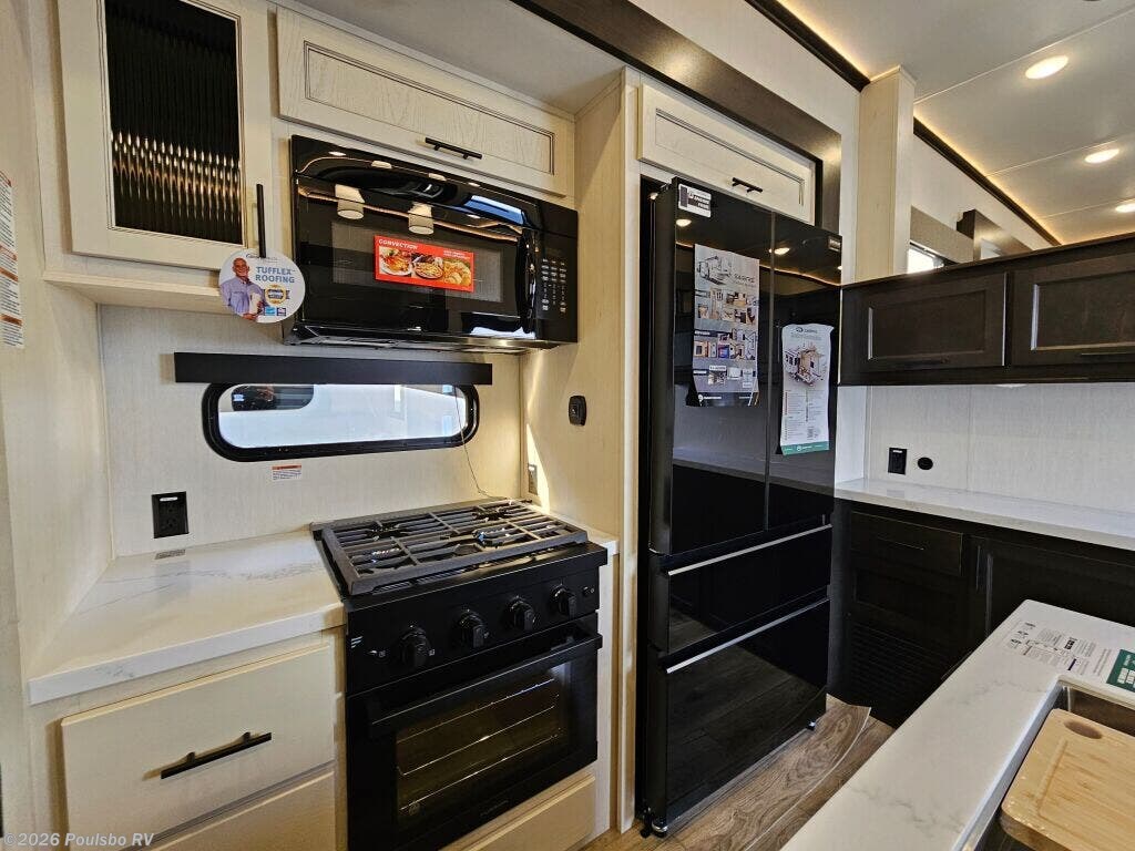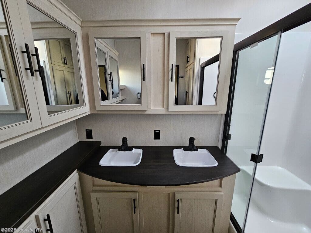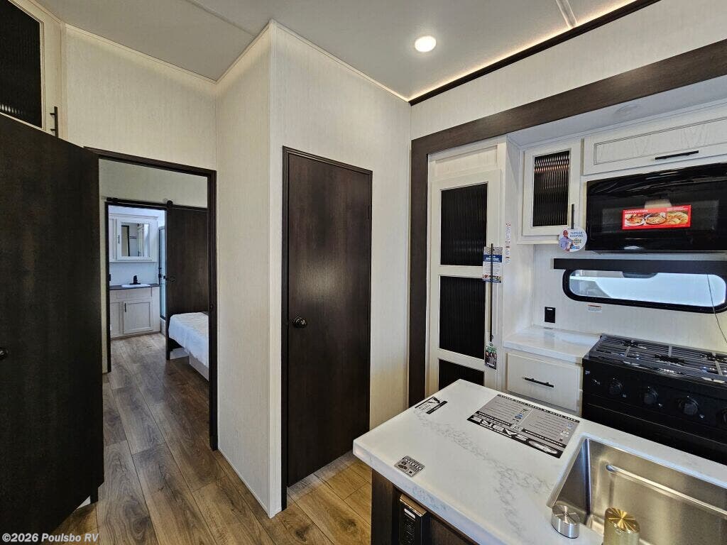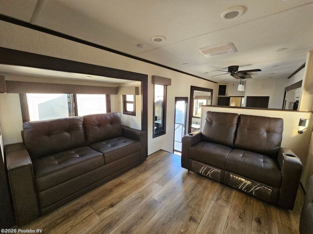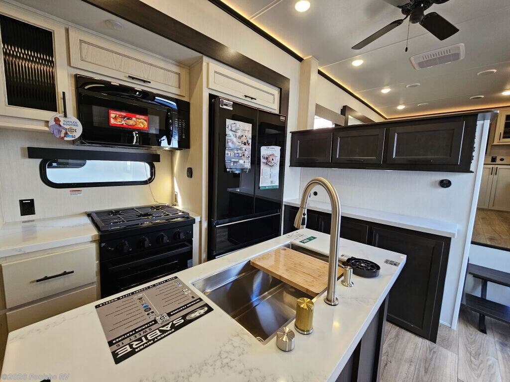 2026 Forest River Sabre 37FLH redefines spacious travel with its expertly designed 42.4 foot length perfect for extended RV adventures. As a new model crafted to combine style and comfort, this RV offers a versatile living area enhanced by five slide outs, significantly expanding your indoor space for effortless entertaining and relaxation. The open floorplan invites natural light and accessibility, making every moment on the road enjoyable while providing ample room to unwind and recharge. With no bunkhouse configuration, the layout focuses on flexible and comfortable sleeping accommodations tailored to your travel needs. The power leveling jacks at front and rear ensure setup is quick and stable, optimizing ease of use wherever your travels take you. Dry weight of 12,503 pounds and a hitch weight of 2,515 pounds balance the ride and towing demands, making mobility smooth and manageable. This model includes thoughtful features aimed at convenience and enjoyment in every journey. Embrace the freedom of the outdoors with the reliability and functionality that come standard in this Forest River model. As a family-owned, award-winning local RV dealer with multiple locations in Sumner, Everett, Kent, and Mt. Vernon Washington, Poulsbo RV here to help you find the perfect RV. Stock#: S975, VIN: 5ZT3SR2B6T6117883.