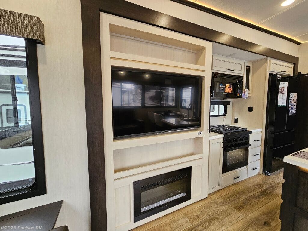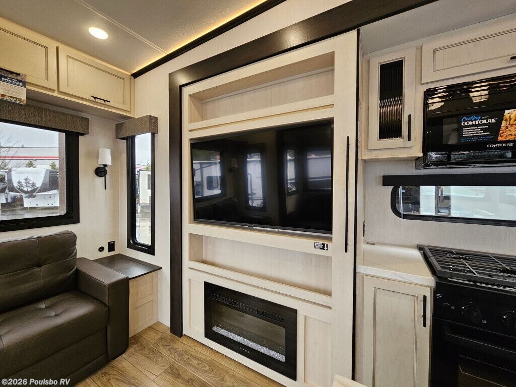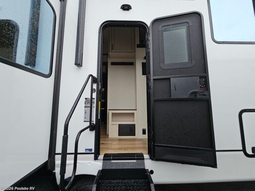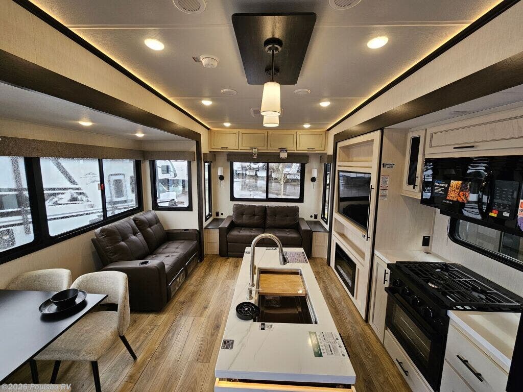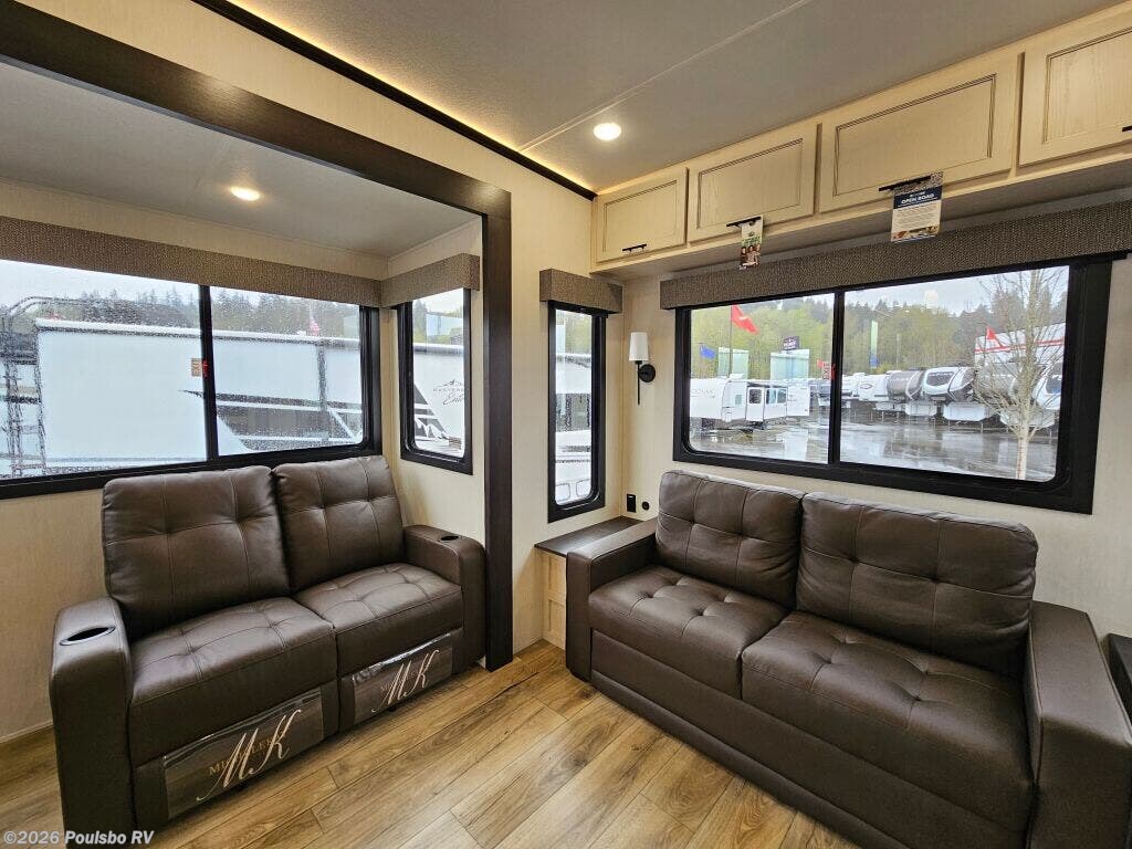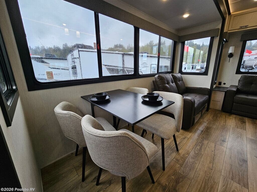 The 2026 Forest River Sabre 36FLX is a new and spacious travel trailer built to elevate your RV lifestyle with room to accommodate families or groups of up to nine people comfortably. Boasting an overall length of 41 feet, this model offers ample living space and versatile sleeping options, including a dedicated bunkhouse that ensures everyone traveling with you has a private and restful place to sleep. Designed for those who enjoy extended outdoor living, the Sabre 36FLX is equipped with two awnings that create ideal shaded areas for relaxing outside or entertaining guests. Its convenient leveling jacks provide effortless setup and stability on various terrain, allowing you to focus on enjoying your journey. The interior living area has been carefully designed to promote relaxation and convenience, with plenty of space to gather with loved ones or unwind after a day of adventure. With a dry weight of 12,503 pounds and a hitch weight of 2,350 pounds, this travel trailer offers a manageable towing experience. Whether you are setting out for a weekend trip or a longer excursion, this Forest River Sabre provides a harmonious balance of comfort, function, and style to enhance your travel experience. As a family-owned, award-winning local RV dealer with multiple locations in Sumner, Everett, Kent, and Mt. Vernon Washington, Poulsbo RV is here to help you find the perfect RV. Stock#: S1017, VIN: 5ZT3SR1BXT6118116.