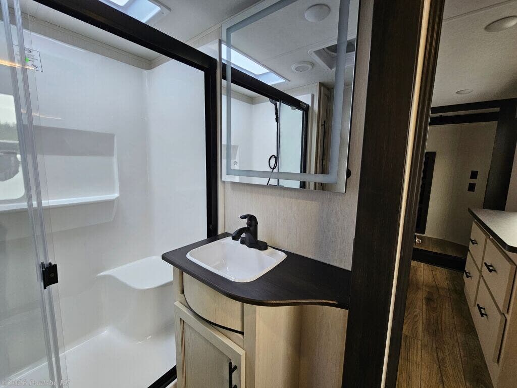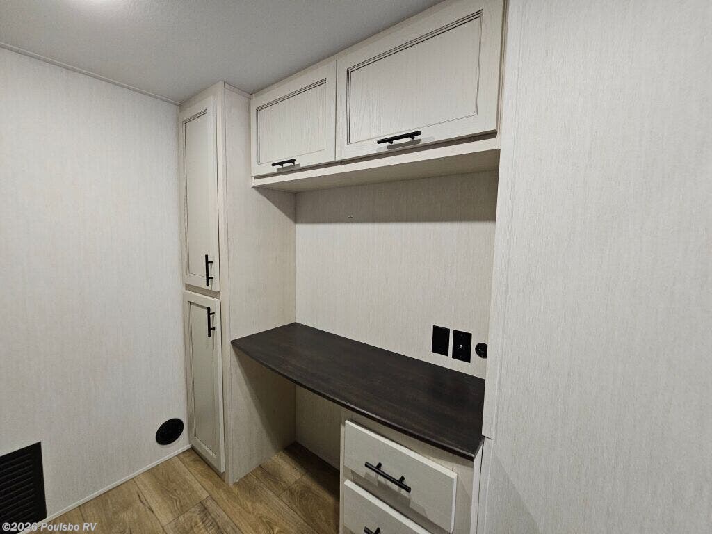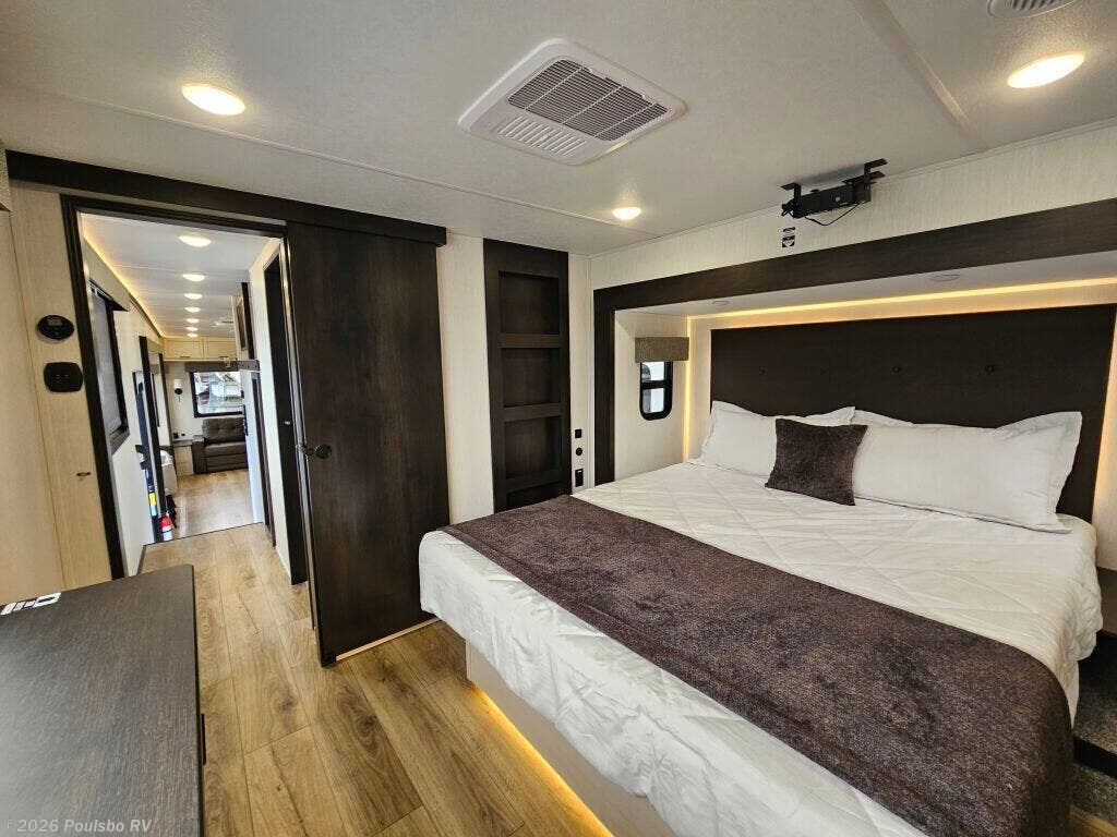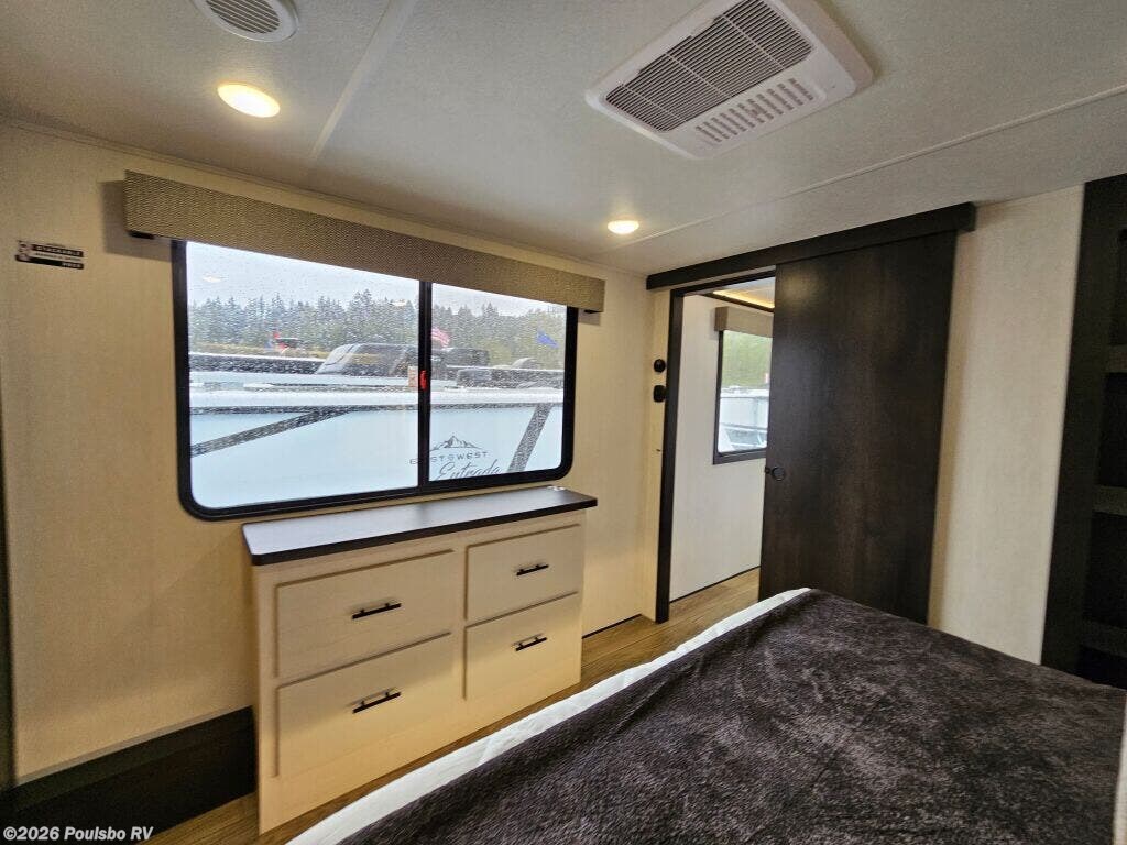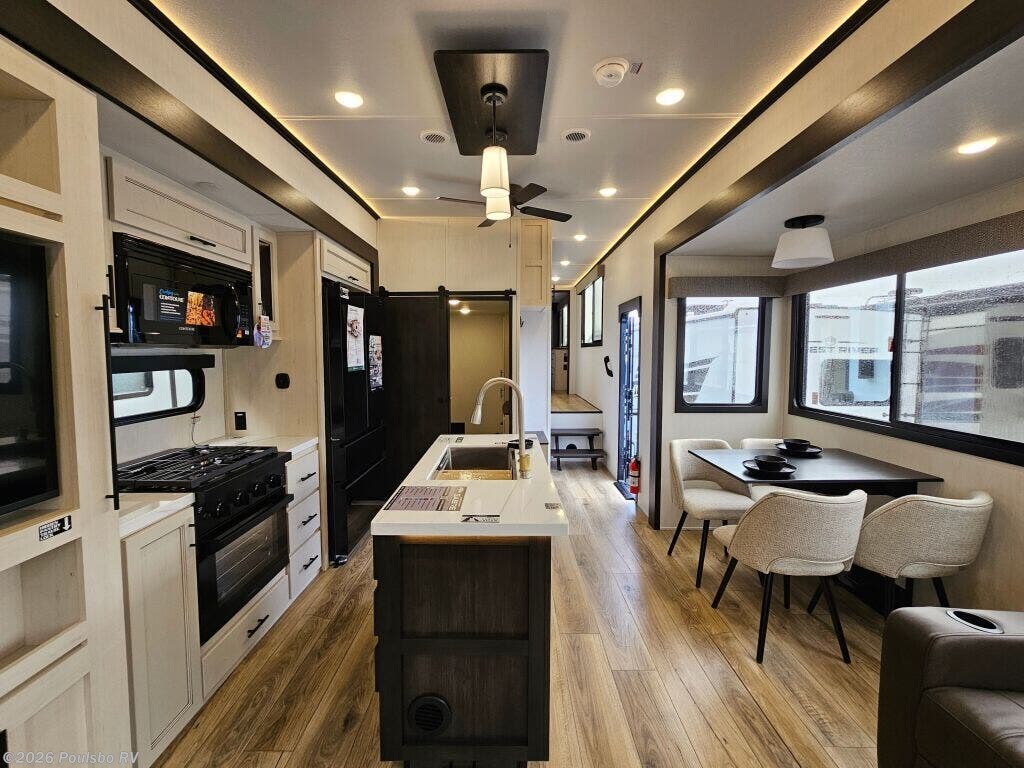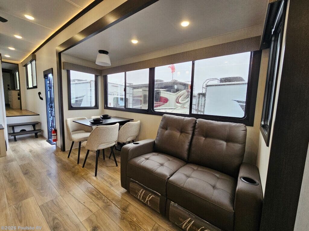 The 2026 Forest River Sabre 36FLX is a new and spacious travel trailer built to elevate your RV lifestyle with room to accommodate families or groups of up to nine people comfortably. Boasting an overall length of 41 feet, this model offers ample living space and versatile sleeping options, including a dedicated bunkhouse that ensures everyone traveling with you has a private and restful place to sleep. Designed for those who enjoy extended outdoor living, the Sabre 36FLX is equipped with two awnings that create ideal shaded areas for relaxing outside or entertaining guests. Its convenient leveling jacks provide effortless setup and stability on various terrain, allowing you to focus on enjoying your journey. The interior living area has been carefully designed to promote relaxation and convenience, with plenty of space to gather with loved ones or unwind after a day of adventure. With a dry weight of 12,503 pounds and a hitch weight of 2,350 pounds, this travel trailer offers a manageable towing experience. Whether you are setting out for a weekend trip or a longer excursion, this Forest River Sabre provides a harmonious balance of comfort, function, and style to enhance your travel experience. As a family-owned, award-winning local RV dealer with multiple locations in Sumner, Everett, Kent, and Mt. Vernon Washington, Poulsbo RV is here to help you find the perfect RV. Stock#: S1017, VIN: 5ZT3SR1BXT6118116.