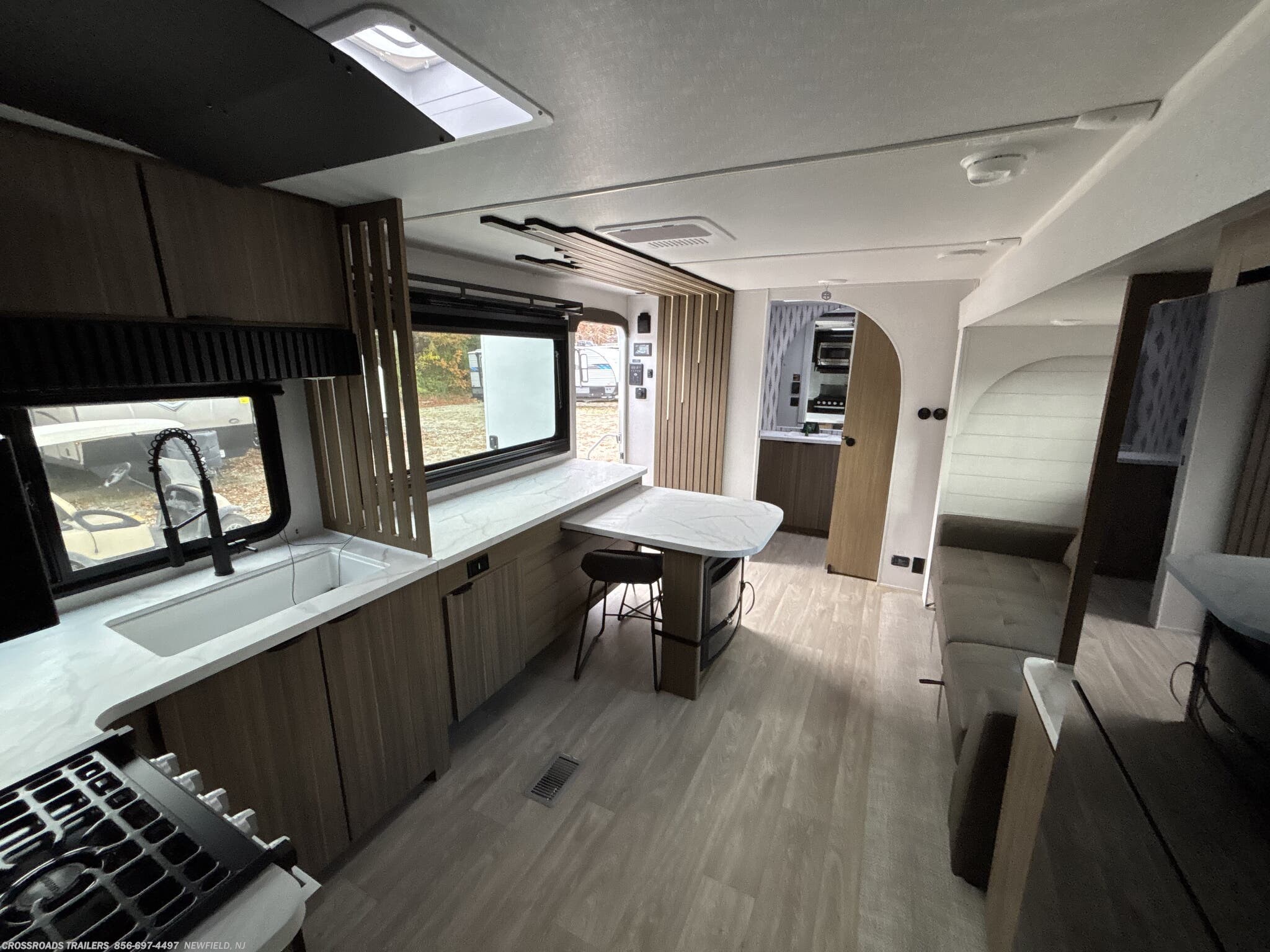 Inside, the 250ZEN delivers a practical, family-friendly layout that maximizes space without sacrificing comfort. The single slide expands the living area, making meals, lounging, and evening downtime more enjoyable. With seating and sleeping for four, you’ll appreciate the efficient use of space that keeps compartments accessible for everyday gear. The RV’s compact length makes it easy to maneuver and park, while its sturdy chassis and bumper-pull design simplify travel between destinations.