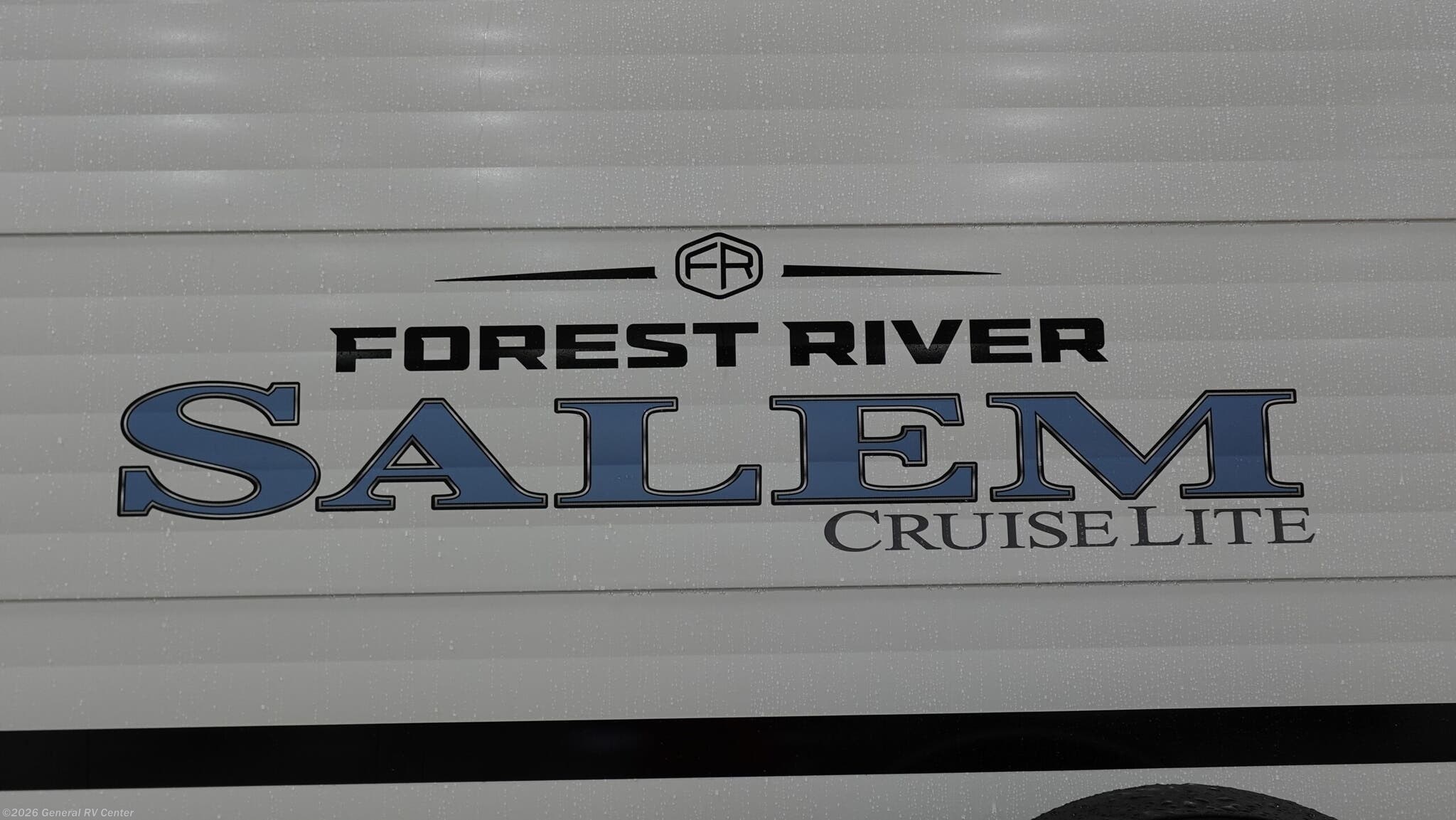 Experience the perfect blend of comfort and adventure with the 2026 Forest River Salem Cruise Lite 273QBXL. This travel trailer is designed to accommodate up to 11 sleepers, making it an ideal choice for families or groups looking to explore the great outdoors without sacrificing luxury. The spacious interior features a versatile king bed and three convertible sleeping options, ensuring everyone has a cozy spot to rest. The bunkhouse at the rear offers a fun and functional space for kids or guests, complete with a Jiffy sofa and fold-up bunk beds. The heart of this RV is its well-appointed center kitchen, equipped with a full-size electric refrigerator and a three-burner cooktop, perfect for preparing meals on the go. The adjacent living area boasts a panoramic window and a Versa Lounge, creating a welcoming space for relaxation or entertaining. Enjoy the convenience of a walk-in shower with a curtain in the center bath. Outside, the 16-foot powered retractable awning and exterior camp kitchen enhance your outdoor living experience, making it easy to enjoy meals and gatherings under the open sky. With a dry weight of 5,975 lbs and a cargo capacity of 1,705 lbs, this trailer is both robust and easy to tow. Whether you're embarking on a weekend getaway or a cross-country adventure, the Salem Cruise Lite 273QBXL is your home away from home. For more details or to see it in person, visit your nearest General RV dealership.