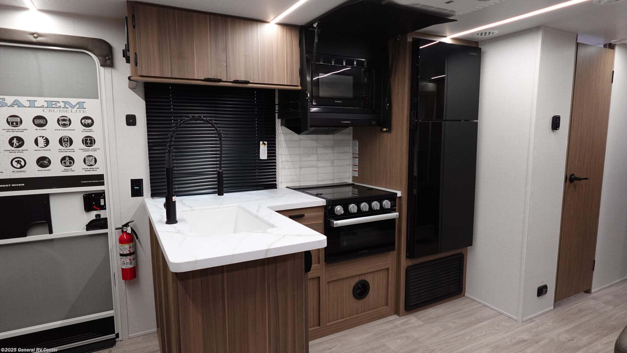Experience the ultimate in family-friendly travel with the 2026 Forest River Salem Cruise Lite 28VBXL. This RV is designed to comfortably accommodate up to ten sleepers, making it perfect for family adventures or group getaways. The spacious interior features a versatile layout with a king-sized bed and three convertible sleeping areas, ensuring everyone has a cozy spot to rest. The bunkhouse is a delight for kids, offering two bunks and a Versa Queen bed, creating a playful and functional space. The center kitchen is equipped with a full-sized electric refrigerator and a three-burner cooktop, perfect for preparing meals on the road. Relax in the inviting center living area, complete with a Versa Lounge and an entertainment center with a fireplace, creating a cozy atmosphere for movie nights or rainy days. The panoramic window floods the space with natural light, enhancing the open feel of the RV. Outside, enjoy the convenience of the 16-foot powered retractable awning and an exterior camp kitchen, perfect for alfresco dining. With a robust construction, ample storage, and thoughtful design, the Salem Cruise Lite 28VBXL is your ticket to memorable adventures. For more information or to see this model in person, visit your nearest General RV dealership.