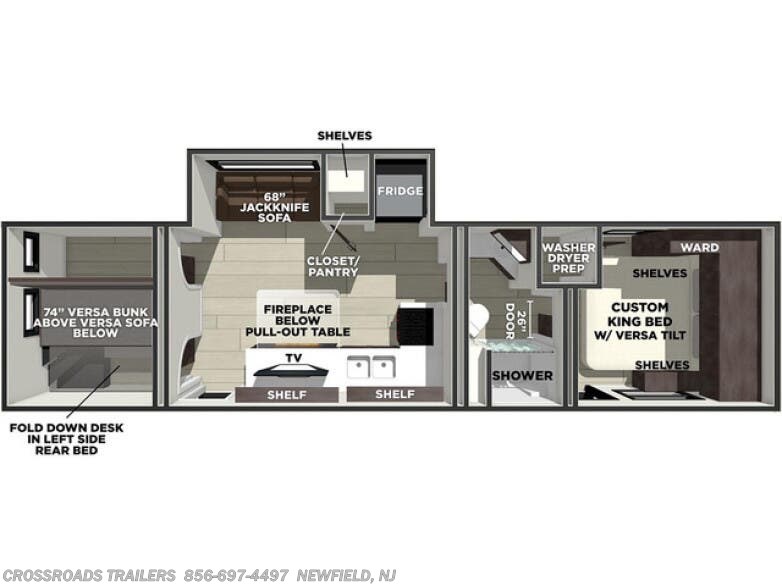 - Frame/Features: Furnace, Water Heater, Converter, Inverter, TV with Antenna