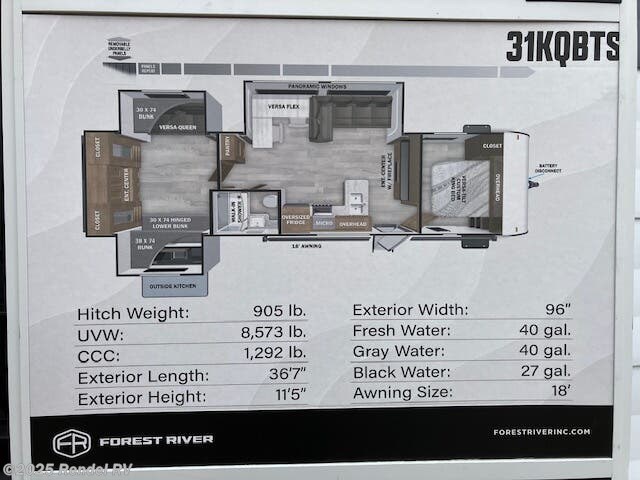 Meet the Salem 31KQBTS, a Towable RV by Forest River built for families and outdoor adventures. Measuring 36 feet 7 inches in length, 8 feet wide, and 11 feet 5 inches tall, this bunkhouse travel trailer carries a GVWR of 11,145 pounds and a dry weight of 9,584 pounds. It sleeps up to 11 people, making it ideal for large families or group trips. New for 2026, this model blends modern comforts with rugged practicality, delivering a reliable platform for weekend getaways or full-time exploration.