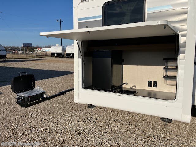 Awning, Exterior Speakers, External Shower, Leveling Jacks, Outside Kitchen, Skylight, Slideout -