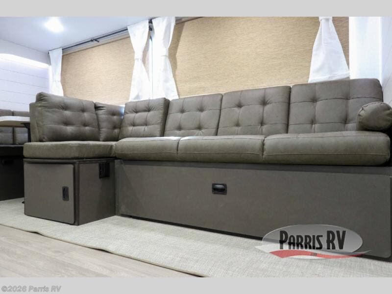 The rear private bunkhouse in this Salem travel trailer is super accommodating for your kids or your overnight guests! It has two opposing slides which provide extra floor space and a full-width closet/entertainment center which delivers extra space for backpacks and tennis shoes. The front private bedroom will be perfect for you with its custom king bed and dual closets, and any additional guests can sleep on the L-shaped versa lounge. There is also a Versa Flex table here to dine at or get some work done. Everyone will enjoy their own space when it's time to freshen up in the full bath with a walk-in shower, and the chef of the group will have all the appliances needed to make meals each day. And don't forget about the outdoor kitchen for outdoor fun!