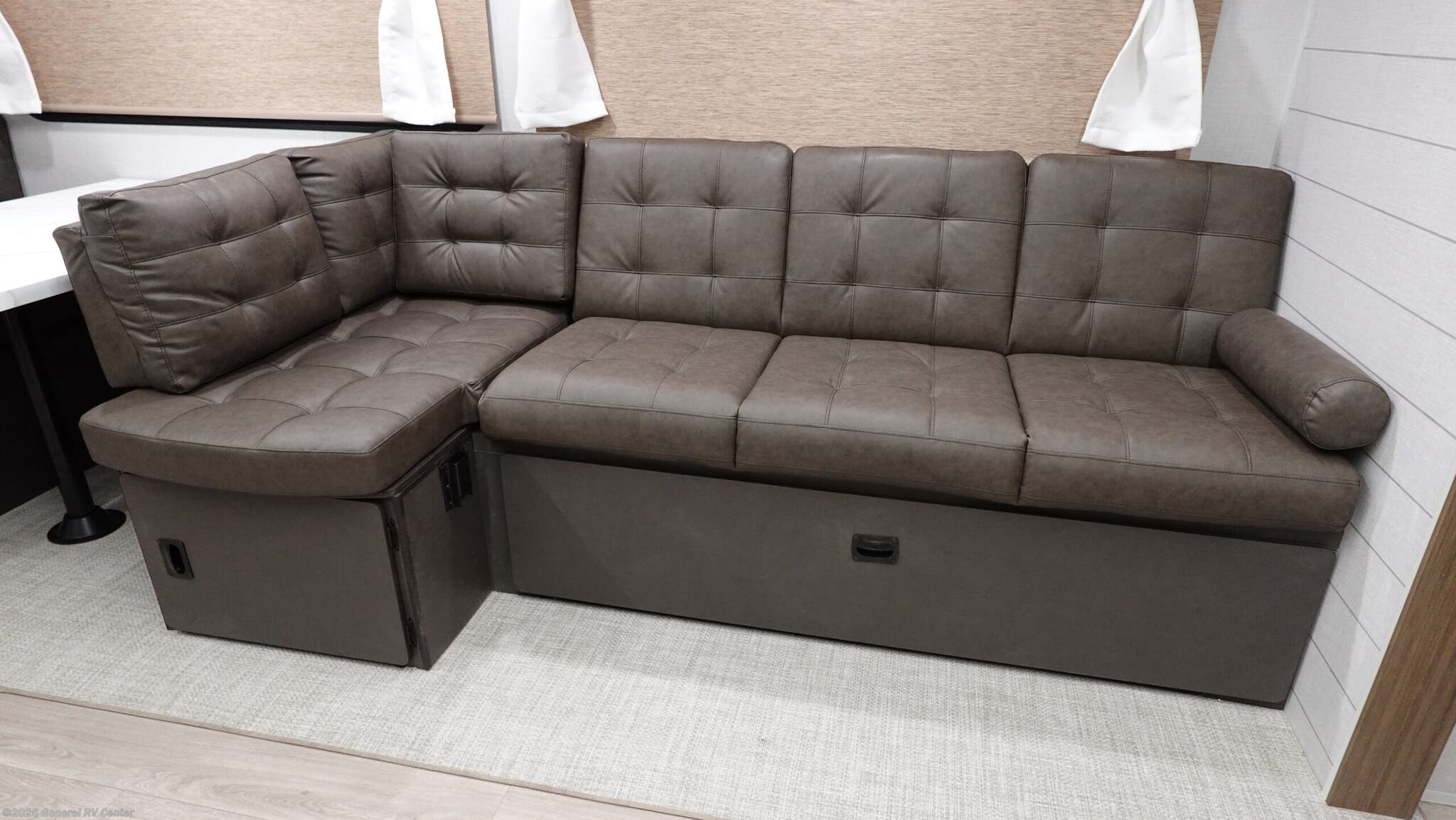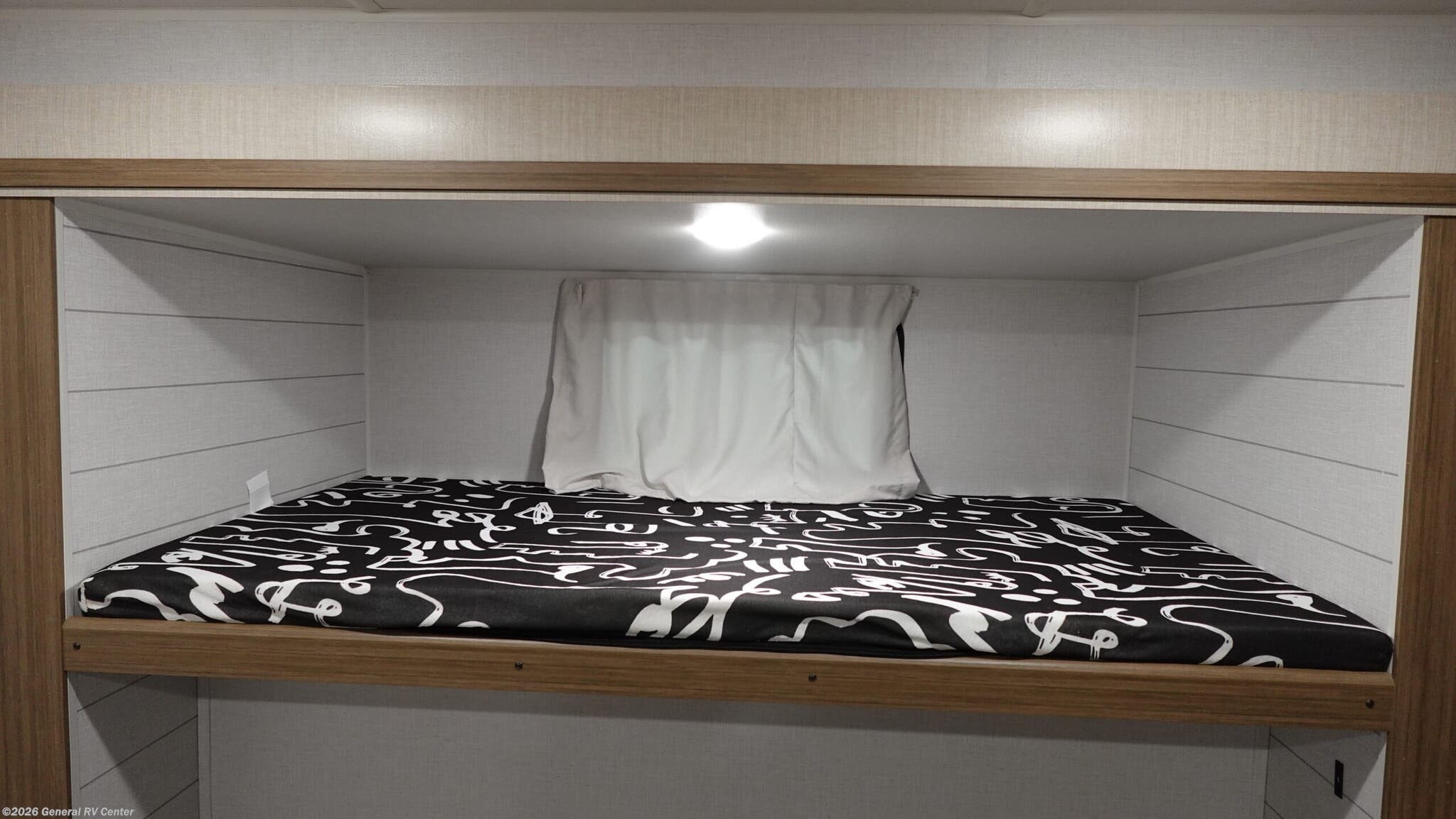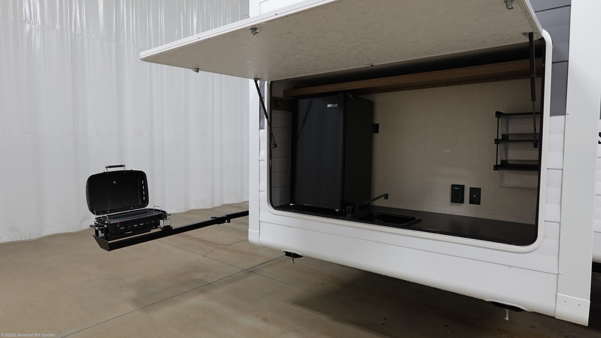Step into the 2026 Forest River Salem 31KQBTS, where adventure meets comfort in a beautifully designed RV. At 36.58 feet long, this spacious haven is perfect for families or groups, comfortably sleeping up to 11 with a luxurious king-sized bed and versatile convertible options. The heart of this RV is its center kitchen, equipped with a full-size electric refrigerator and a three-burner cooktop, making meal prep a breeze. The panoramic windows invite natural light, enhancing the open feel of the center living area, which features the cozy Versa Flex seating arrangement. The thoughtful layout includes a separate bunkhouse, offering privacy and fun for the kids with three bunks and a versatile queen. The front and rear bedrooms provide ample storage, ensuring everyone has their space. Enjoy the outdoors with the 18 ft. powered retractable awning and an outside kitchen, perfect for alfresco dining. With a cargo capacity of 1,292 lbs and a hitch weight of 905 lbs, this RV is as practical as it is stylish. Experience the perfect blend of luxury and functionality with the Salem 31KQBTS. For more details, visit your nearest General RV dealership.